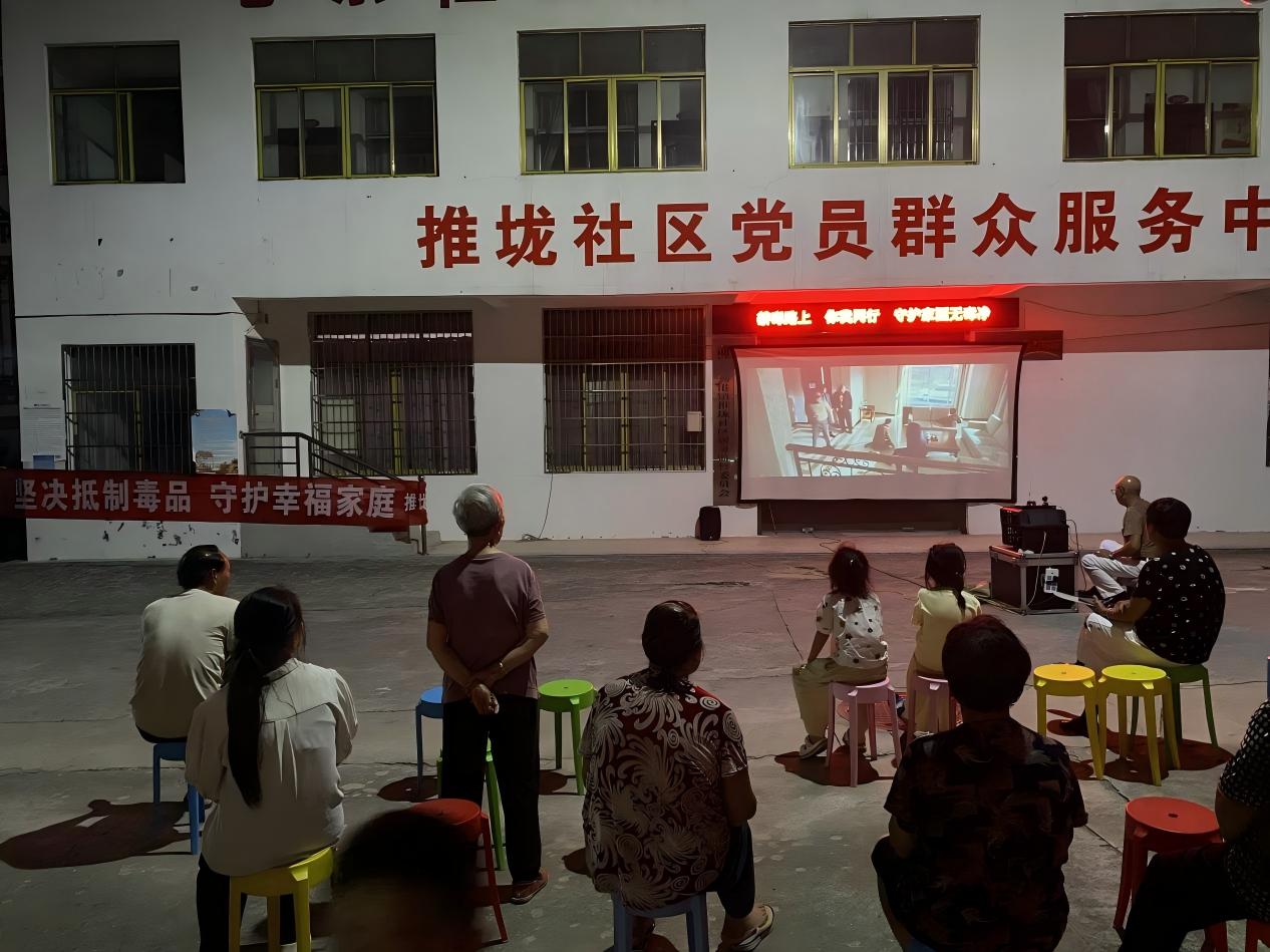 【通讯员 吴瑾 陈霖 徐浩】7月16日晚,通城县文旅局联合马港镇综治办、社区戒毒康复中心在推垅社区开展“光影铸防线,无毒护家园”主题宣传活动。通过“公益电影+禁毒宣传”的创新形式,将禁毒知识融入群众文化生活,吸引百余名居民积极参与。