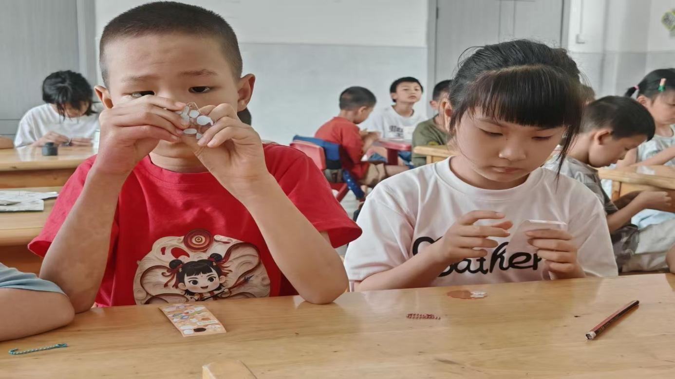 通过这次手工小作坊,记者采访到心理调研团成员孟思彤,她表示:“乡村孩子平时接触手工材料的机会较少,握着安全剪刀裁剪纸盘边缘、用胶水粘贴彩纸装饰的过程,既能让他们在实践中掌握新技能,又能增强自信心。当看到毫无联系的材料在自己手中融为一体,他们眼中的成就感与自豪感格外动人,这种正向反馈将会进一步激发他们的创造力。”