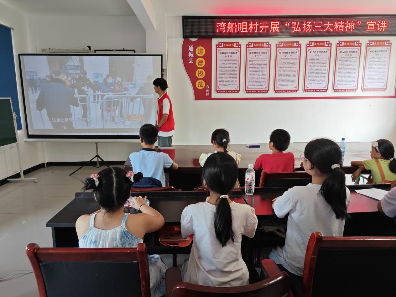 【通讯员 付译可 周子焱】7月28日,通城县沙堆镇青年隽才宣讲员与武昌理工学院“启元计划”星火志愿服务队携手,为当地“暑假学堂”的孩子们带来一场“三大精神”宣讲启蒙课。红色基因与时代精神的种子,在生动互动中悄然植入孩子们的心田。