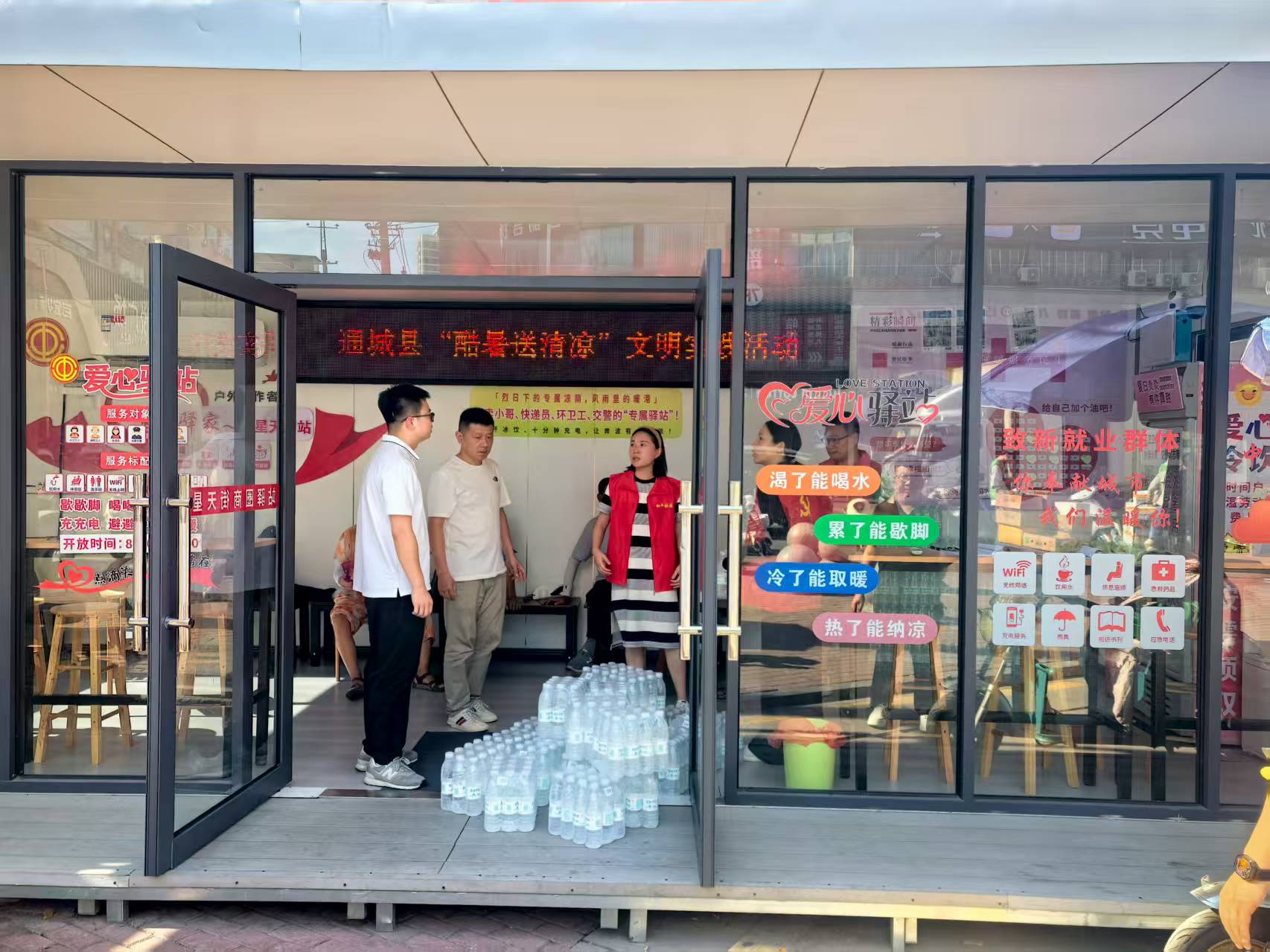 【通讯员 赖淑慧】8月29日,通城县新时代文明实践指导中心组织开展了一场“送清凉”文明实践活动,向城区中星天街爱心驿站捐赠100箱饮用水,为在高温下坚守岗位的环卫工人、外卖员、快递员等户外劳动者提供饮水保障。