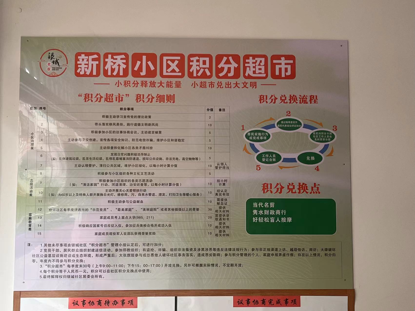自2024年试点启动以来,新桥小区“积分超市”已持续运行半年,从初步探索逐步走向常态化运作。下一步,银城社区将进一步优化积分规则、丰富兑换内容,吸引更多居民从社区建设的“旁观者”转变为“参与者”,推动社区自治从“独角戏”升级为“大合唱”,以点滴行动凝聚共建力量。