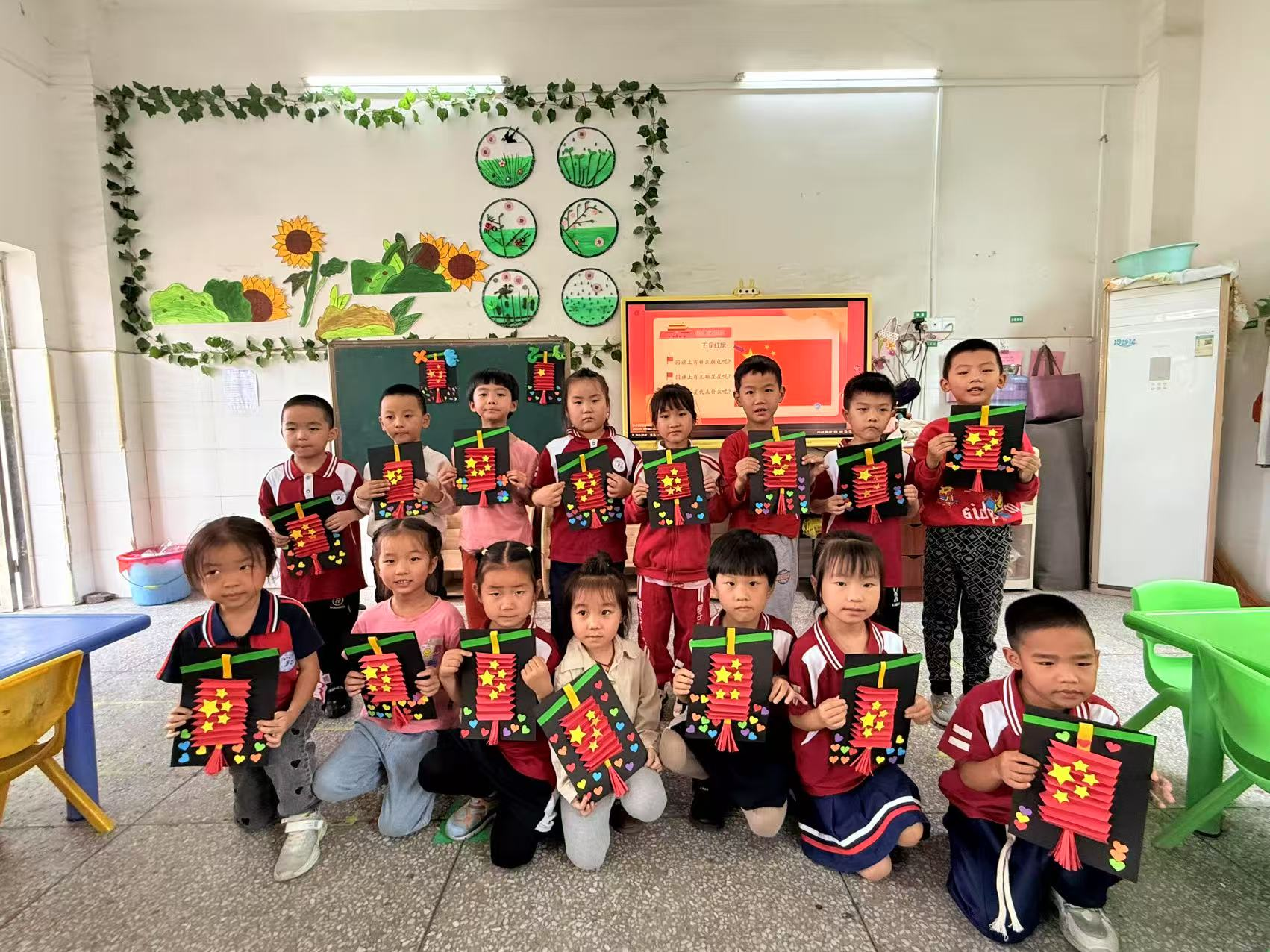 大坪乡水口幼儿园的孩子们在鲜艳的五星红旗的映衬下,脸上洋溢着自豪与喜悦,映照出了他们对祖国真挚的热爱和最衷心的祝愿。