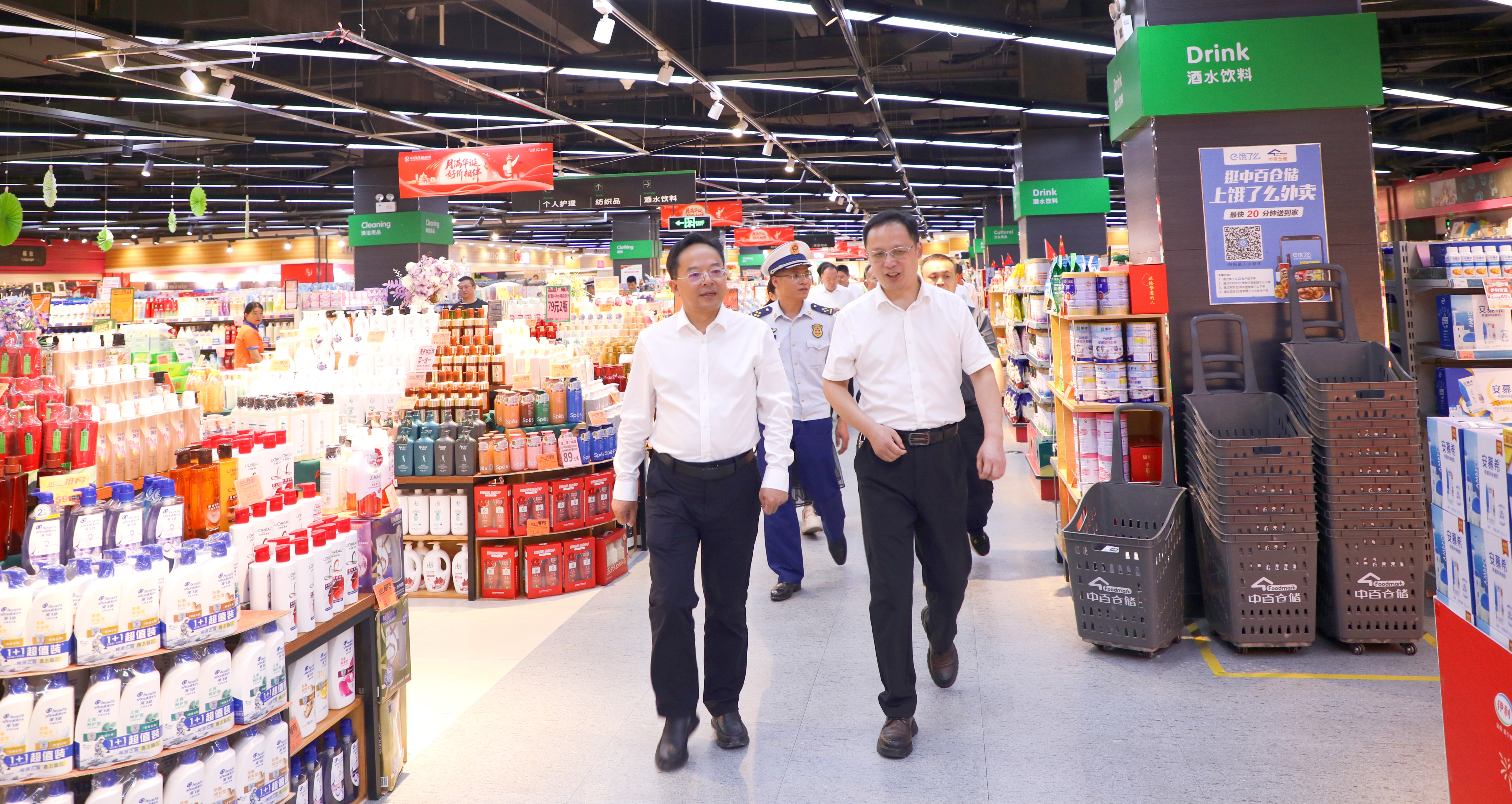 在中百仓储咸宁购物广场有限公司通城店,黄建平详细检查超市食品安全责任落实、消防设施配备、消防通道畅通及市场保供稳价等情况,叮嘱企业切实履行好安全生产主体责任,紧盯食品安全、消防安全等重点领域,扎实开展安全生产隐患排查整治,加强员工安全培训,全力补齐短板弱项,坚决守住安全底线。