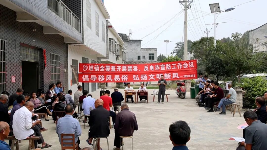 在沙堆镇瑶泉村,一场“安全+文明”主题屋场会让村委会旁的空地热闹非凡。镇综治中心工作人员用方言讲解常见毒品的特征与危害,派出所民警结合本地案例拆解“刷单返利”“虚假投资”等骗局套路,还现场告知举报途径与应急措施。“以前只知毒品害人,现在懂了怎么防、怎么报,这屋场会开得实在!”村民们翻着宣传手册,你一言我一语地热议着。
