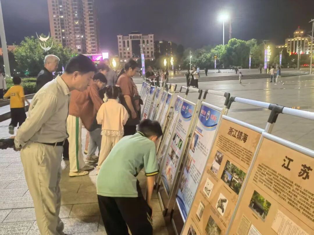 傍晚的银山广场灯火通明,“禁毒先驱林则徐生平事迹全国十馆联展”吸引着往来市民驻足围观。禁毒展板上的图文清晰呈现毒品危害,民警化身“历史主讲官”,讲述林则徐抗烟壮举与当代禁毒形势,让禁毒爱国精神深入人心。不远处的宣传摊位前,工作人员一边发放印有标语的宣传品,一边结合展板上的毒品类型讲解识别毒品技巧,现场互动问答气氛热烈。