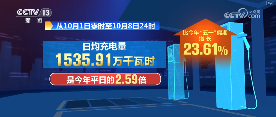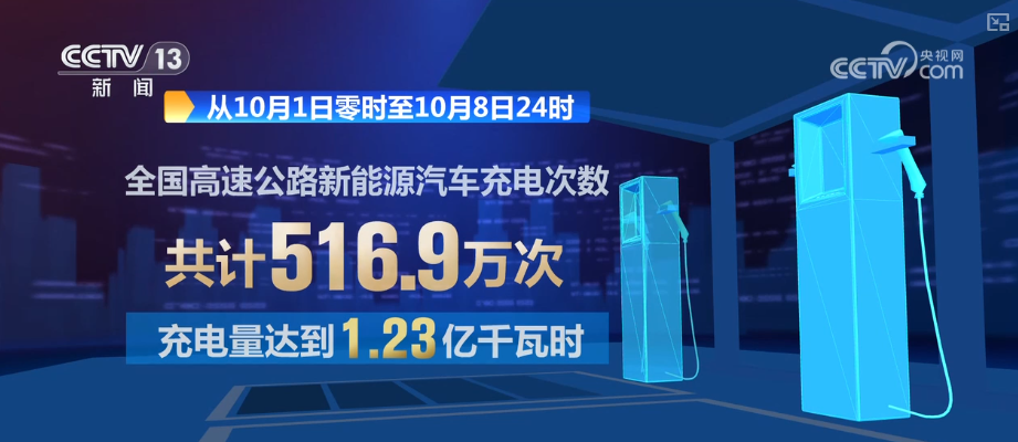 从10月1日零时至10月8日24时,全国高速公路新能源汽车充电次数共计516.9万次,充电量达到1.23亿千瓦时,日均充电量1535.91万千瓦时,是2025年平日的2.59倍,比2025年“五一”假期增长23.61%。