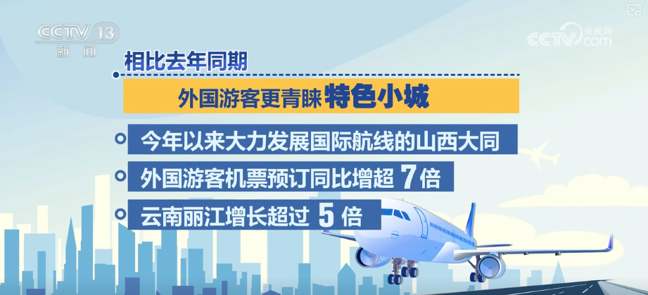 相比2024年同期,外国游客更青睐特色小城。2025年以来,大力发展国际航线的山西大同,外国游客机票预订同比增超7倍,云南丽江增长超过5倍。哈密、澜沧、二连浩特等特色小城这个假期也都迎来了不少外国游客打卡。
