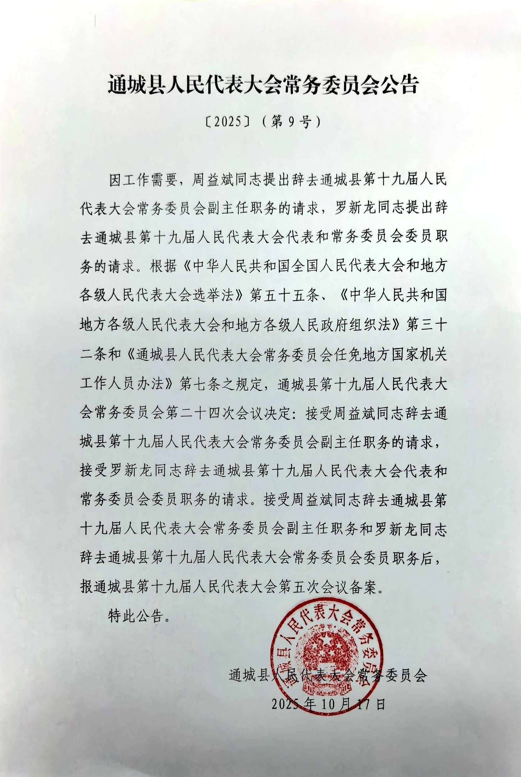 会议传达学习了《习近平总书记在庆祝中华人民共和国成立76周年招待会上的重要讲话精神》《习近平总书记给天津大学全体师生的重要回信精神》以及《求是》杂志发表习近平总书记重要文章《中华民族共同体的形成和发展是人心所向、大势所趋、历史必然》等;审议了人事任免事项;听取和审议了《通城县人民政府关于通城县国民经济和社会发展“十五五”规划编制情况的报告》《通城县人民政府关于2024年度企业国有资产管理情况的专项报告》《县人民政府办公室关于县十九届人大四次会议代表建议办理的报告》,并开展了满意度测评;书面审议了《通城县人民政府关于2024年度国有资产管理情况的综合报告》;审议并表决通过了《通城县人民政府关于2024年县级财政决算报告》《通城县人民政府关于2025年县级财政预算调整报告》;审议了《关于刘中英等代表资格终止的报告》;审议了县十九届个别人大代表辞职事项;审议了关于补选县十九届人大代表的决定。