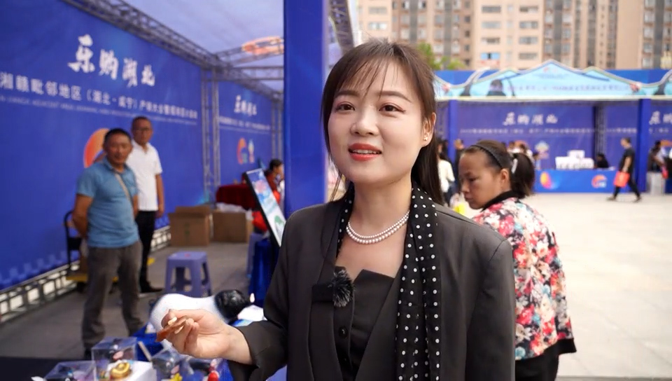 武汉游客 李先生:鄂湘赣毗邻地区产销大会感觉非常热闹,现场氛围也很好,我刚才还买了平江县的特产干子。