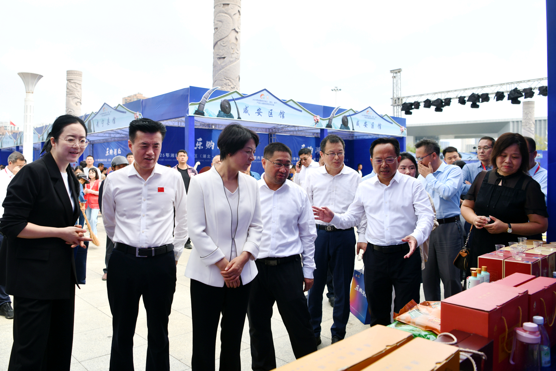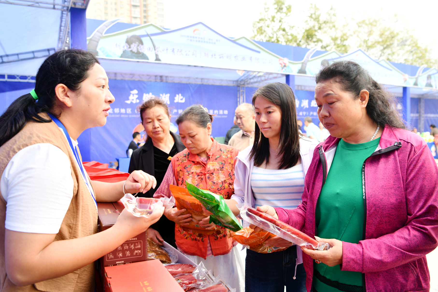 不仅外地特产备受青睐,本地“尖货”也借机走出“深闺”。在通城展区,以国家地理标志产品通城“两头乌”猪肉为原料制作的肉肠、腊味等产品,凭借鲜嫩的口感和地道的风味,成了参观群众争相购买的“香饽饽”,不少展位前刚摆上的货品,没多久就被抢购一空。