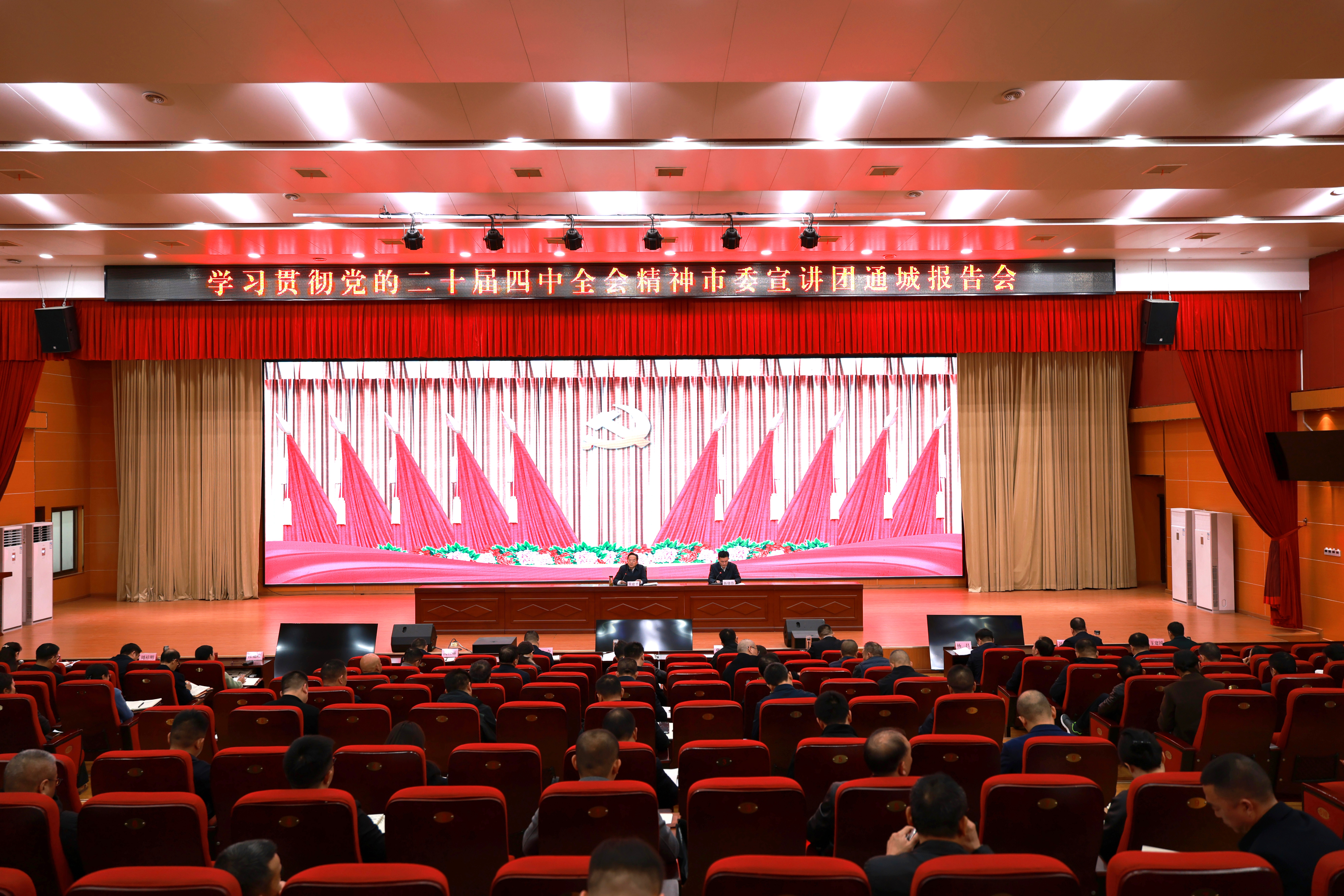 在职副县级以上领导干部;各乡镇党政主职;县直各单位党政主职;县委理论宣讲团成员、青年隽才宣讲员代表参加报告会。
