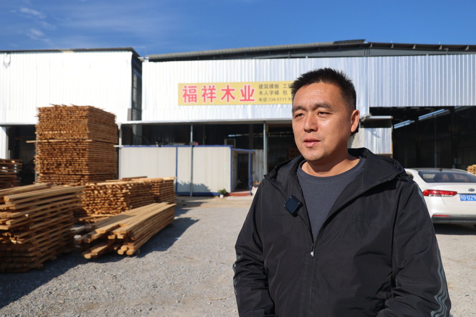 通城县五里镇木材市场员工 李艳兵:我家住在马港镇石溪村,一直从事木材加工行业,现在木材市场搬到五里镇后,离家里更近了,既可以就业增收又可以照顾家人。