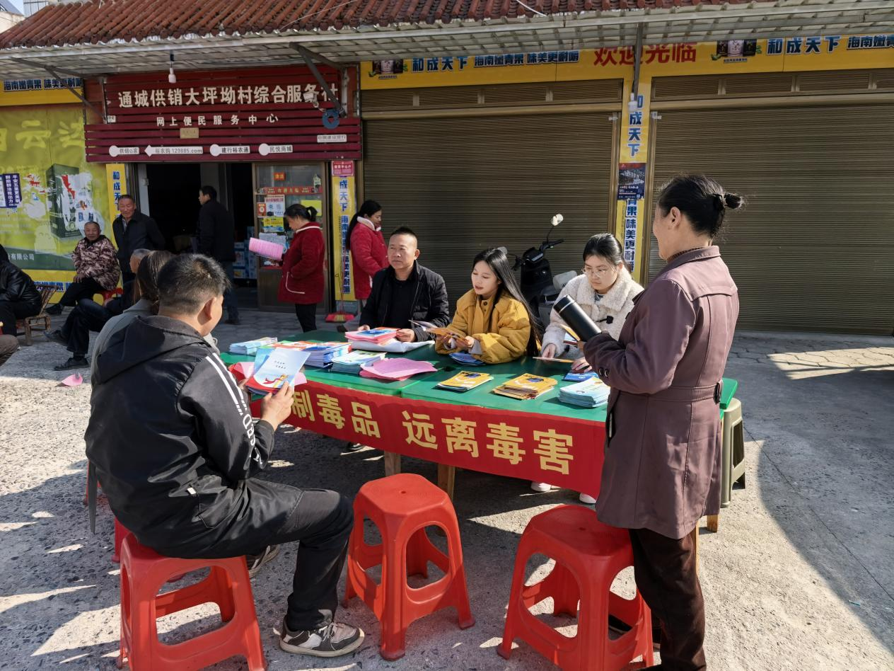 【通讯员 吴阳 郑卉华 钟敏】12月8日上午,通城县五里镇平安办与司法所利用居民午间闲暇时段,在大坪坳村人流密集处联合设立禁毒宣传咨询台。