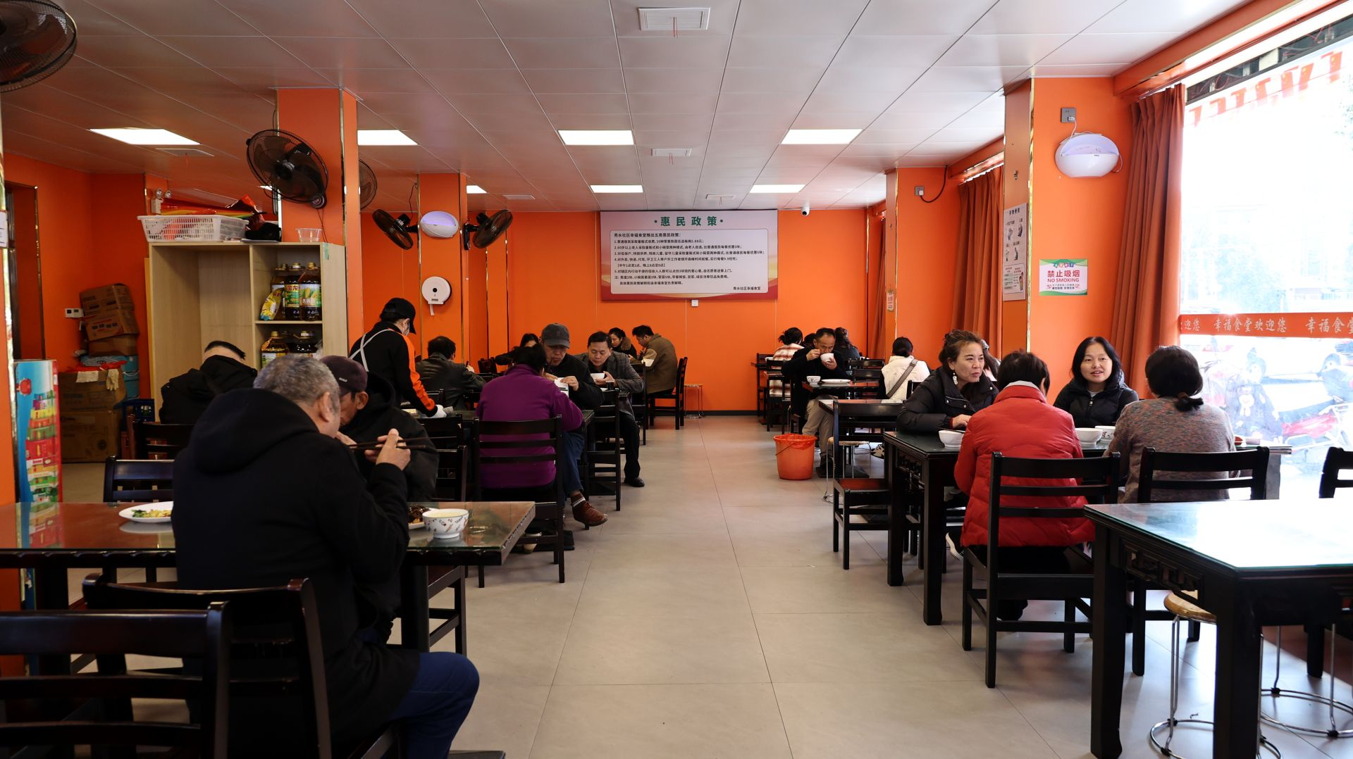 “菜品很丰富,还有免费的豆浆和汤,感谢政府和社区帮我们建这个食堂,心里非常温暖非常幸福。”黄荷花如是说。
