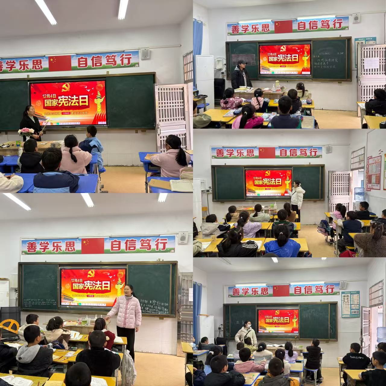 升旗仪式上,学生代表以“宪法在我心中”为题发表国旗下讲话,用稚嫩却坚定的声音阐述宪法意义,激发全校师生学习热情;下午班会课上,各班级开展“学宪法 讲宪法”主题活动,班主任通过宣传视频、法治小故事、互动讨论等形式,引导学生理解宪法与日常生活的联系,思考如何做合格小公民。