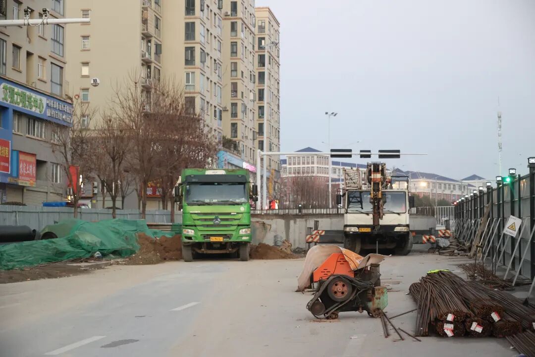 1月23日,记者在施工现场看到,一段长约300米的路面已被围挡作业,路边立着几座“混凝土墩柱”,每座高 12 米、宽 10 米。施工人员正操作吊装设备安装模板,混凝土搅拌车、运输车辆有序进出,现场施工秩序井然。