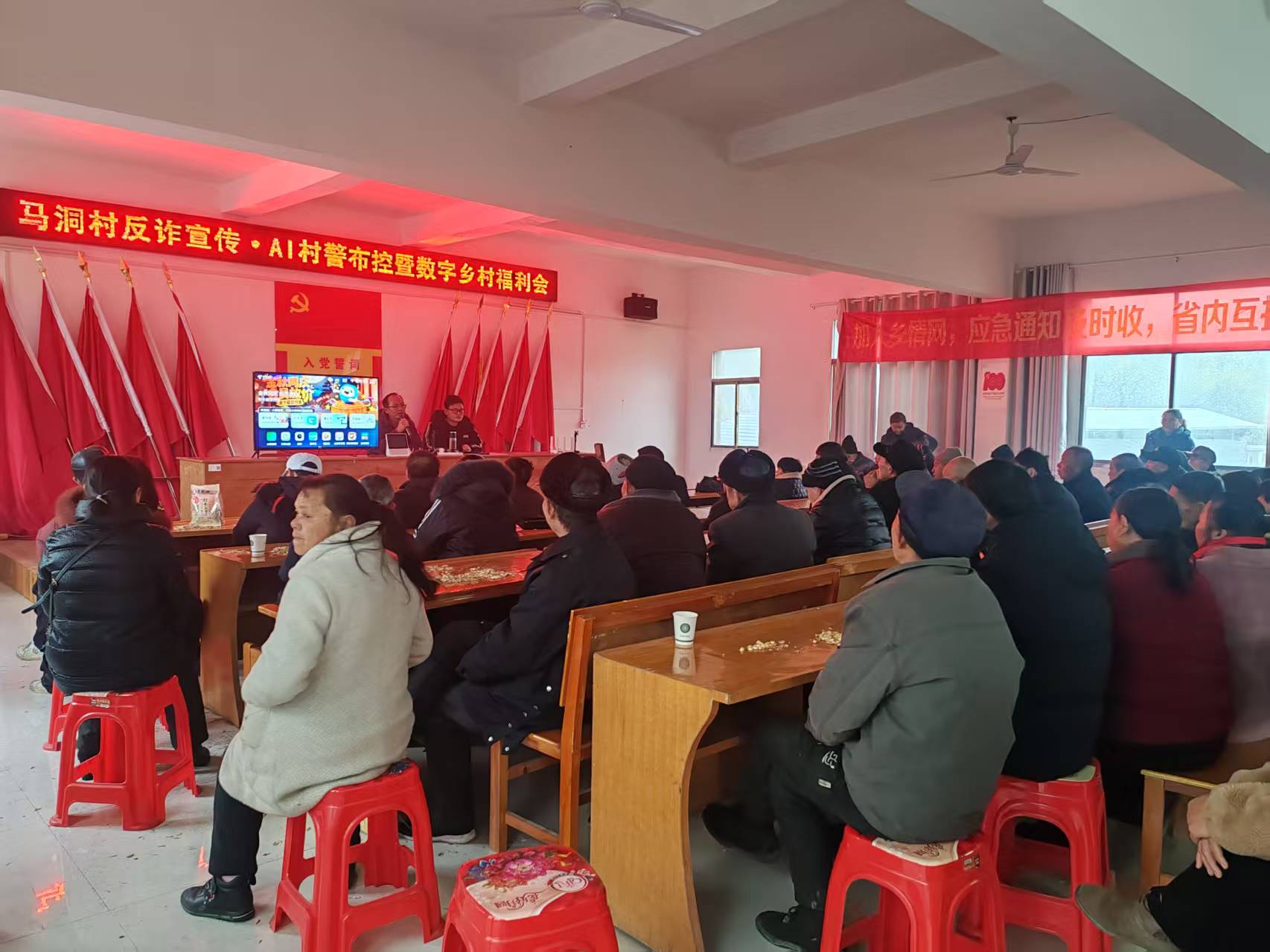 【通讯员 陈梓彬 洪涛】为筑牢乡村安全防线,提升村民安全意识,近日,通城县马港镇马洞村村委会联合中国电信通城分公司马港支局,在村委会召开“马洞村反诈宣传•AI村警布控暨数字乡村福利会”。全村近百名村民、老党员齐聚一堂,共学安全知识,共话乡村平安。