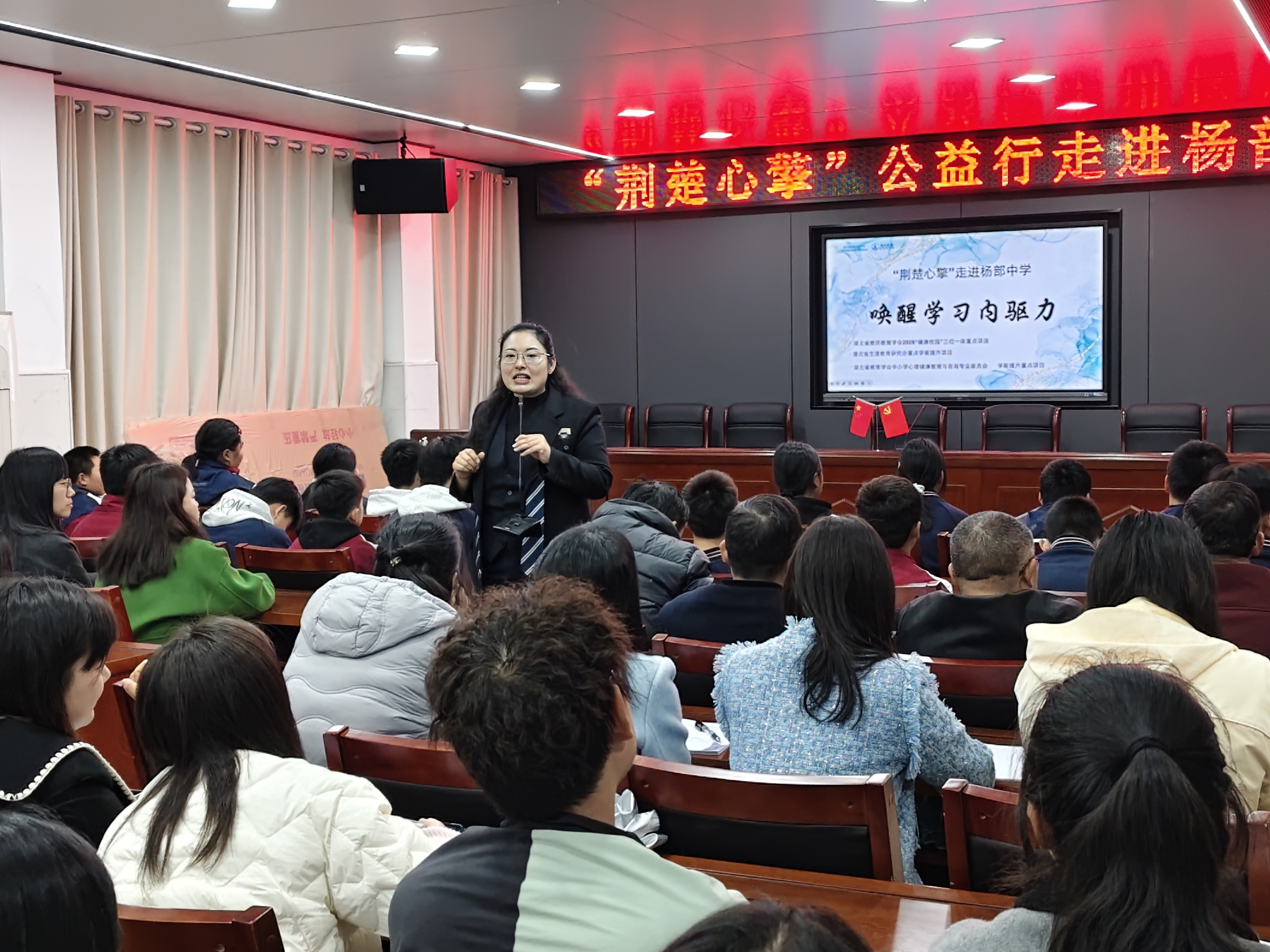 省专委会副秘书长李好老师详细阐释了“荆楚心擎”项目的内涵。她指出:“‘心擎’二字,‘心’是内心动力,‘擎’是引擎支撑。我们不是替学校扛活,而是为学校装引擎,让学校自己长出健康的力量。”