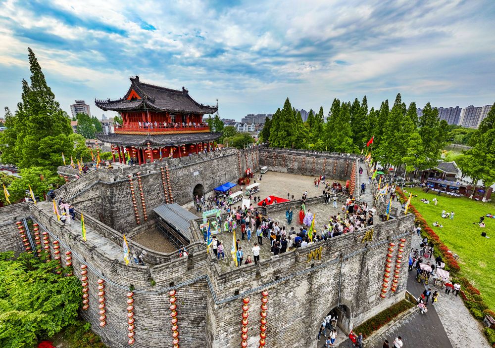 市民游客登上荆州古城,感受古城文化魅力。(张梦瑶 摄)