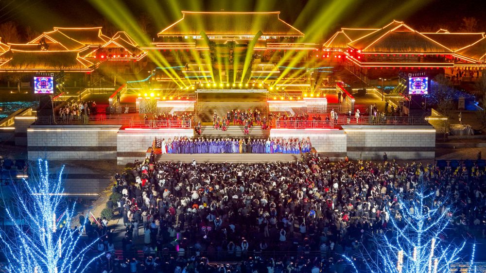 荆州纪南生态文化旅游区中,“荆州十二时辰·楚乐八百年”大型展演再现2000多年前楚国郢都“车毂击,民肩摩”的盛景,让楚文化不再只是典籍中的文字,而是可触可感的艺术呈现,给观众留下历久弥新的荆楚文化印记;