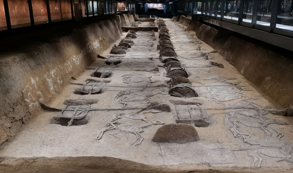 在王陵一号车马坑中,165匹骏马和43辆战车组成的威武战阵,气势恢宏,车辚辚、马萧萧,仿佛带着2000多年前的荣光奔涌而来,向世人展示荆楚文化的灿烂辉煌。