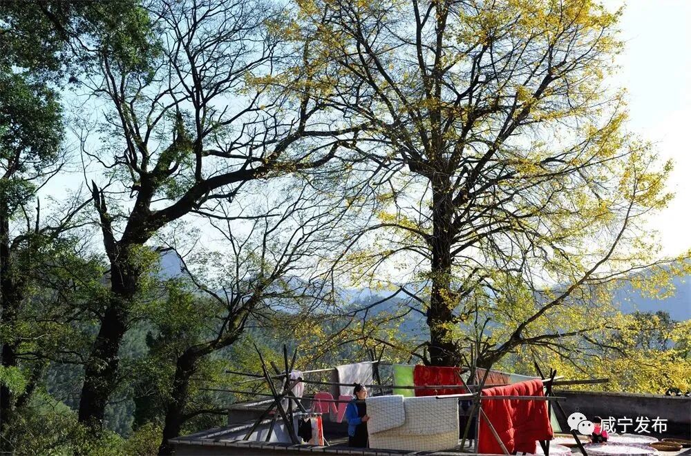 密林深处错落有致的古民居中,趁着秋日暖阳,村民们纷纷“晒秋”。有的搬出了自家的衣服被褥,有的将收获的辣椒、红苕粉等农作物,用竹制簸箕晾晒在门前空地、农家屋顶,一派秋意融融。