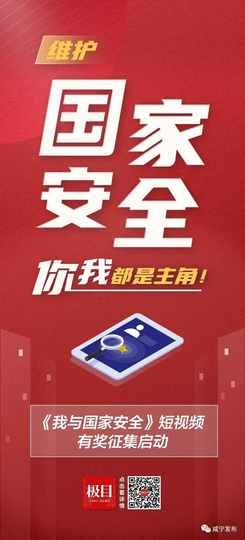 本次活动征集的获奖作品,将通过极目新闻全媒体平台进行集中展示,进一步促进总体国家安全观深入人心。征集邮箱:23854375@qq.com(请在标题注明:《我与国家安全》短视频征集,文中请标注姓名、单位、联系方式)。