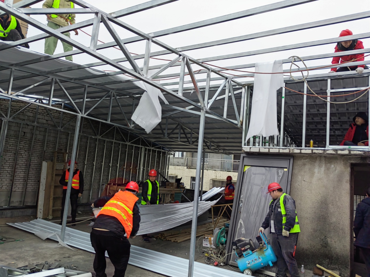 经查,搭建钢架房的住户为粮食小区毛某某,该户在未经任何部门许可的情况下,擅自在自家六楼房顶搭建钢架房,属典型的私搭乱建行为。对此,执法人员立即组织执法力量,依法对毛某某违法搭建的120平方米的钢架房进行了强制拆除。