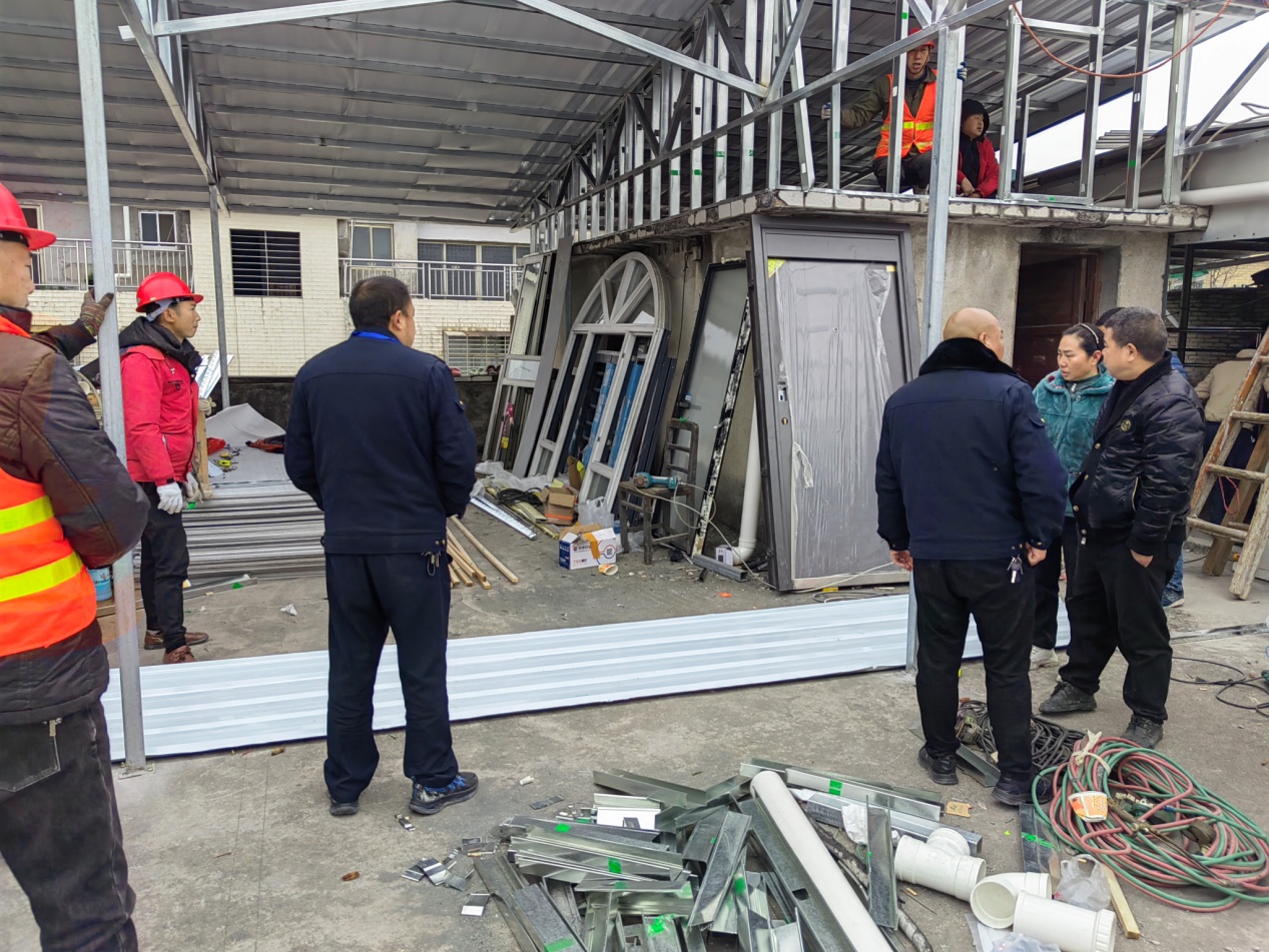 【全媒体记者 胡远 通讯员 周剑桥】2月22日,县城管综合执法大队接到群众举报,位于粮食小区有住户正在违法搭建钢架房。