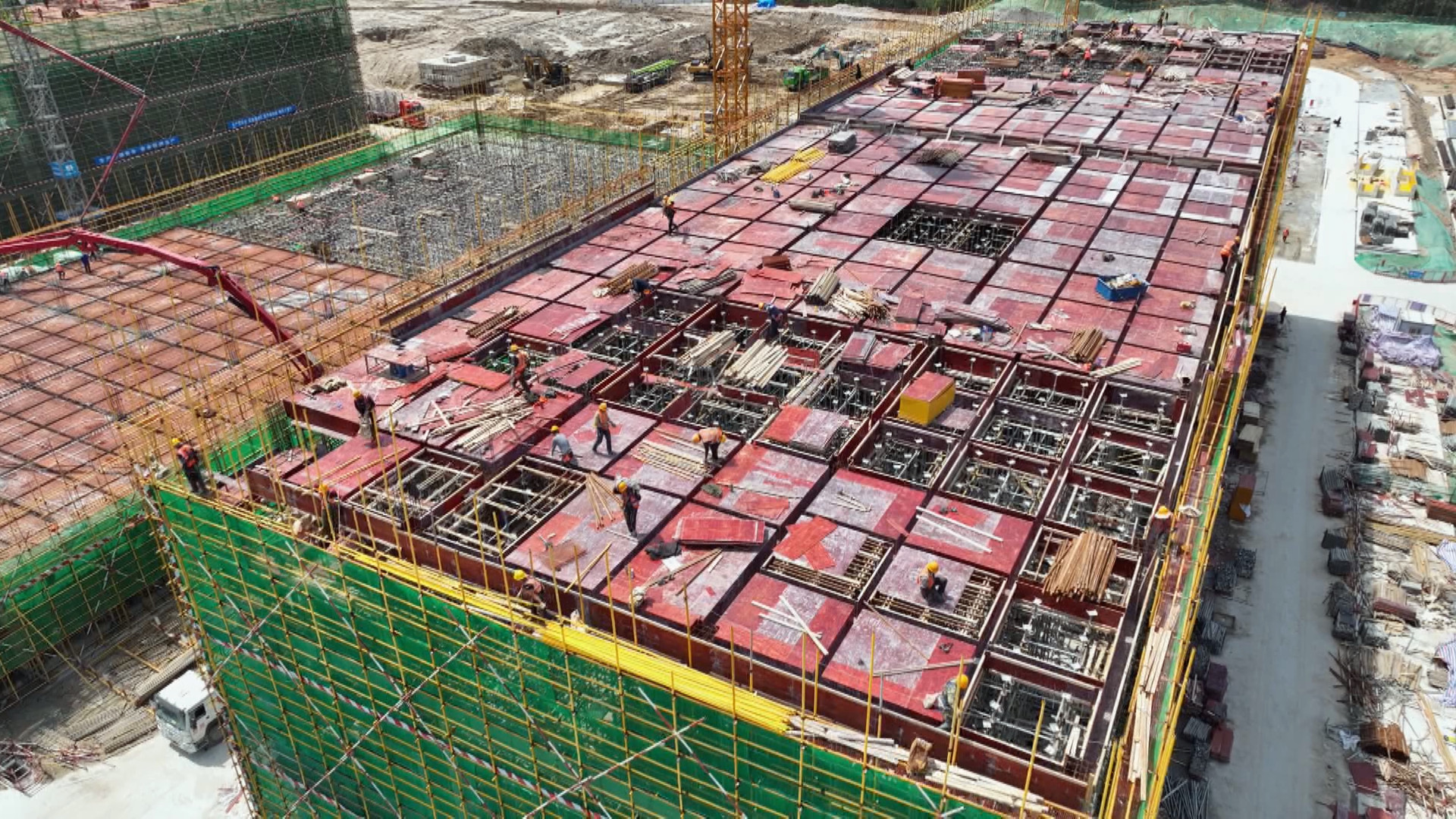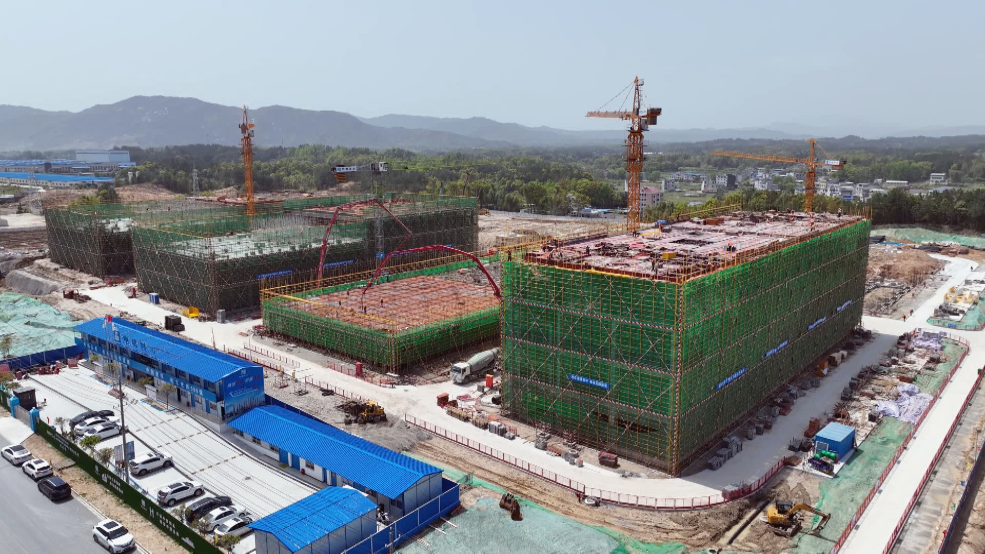 中建科工集团有限公司通城县研磨产业回归创业园项目执行经理 黄文宇:“我们现场有400余名工人,各类机械设备、种类应有尽有。计划2号、6号、8号楼主体结构4月中下旬完成施工,整体8栋厂房主体结构在6月底完成,12月份完成整个一期产业园区建设,达到春节前商家企业入驻条件。”