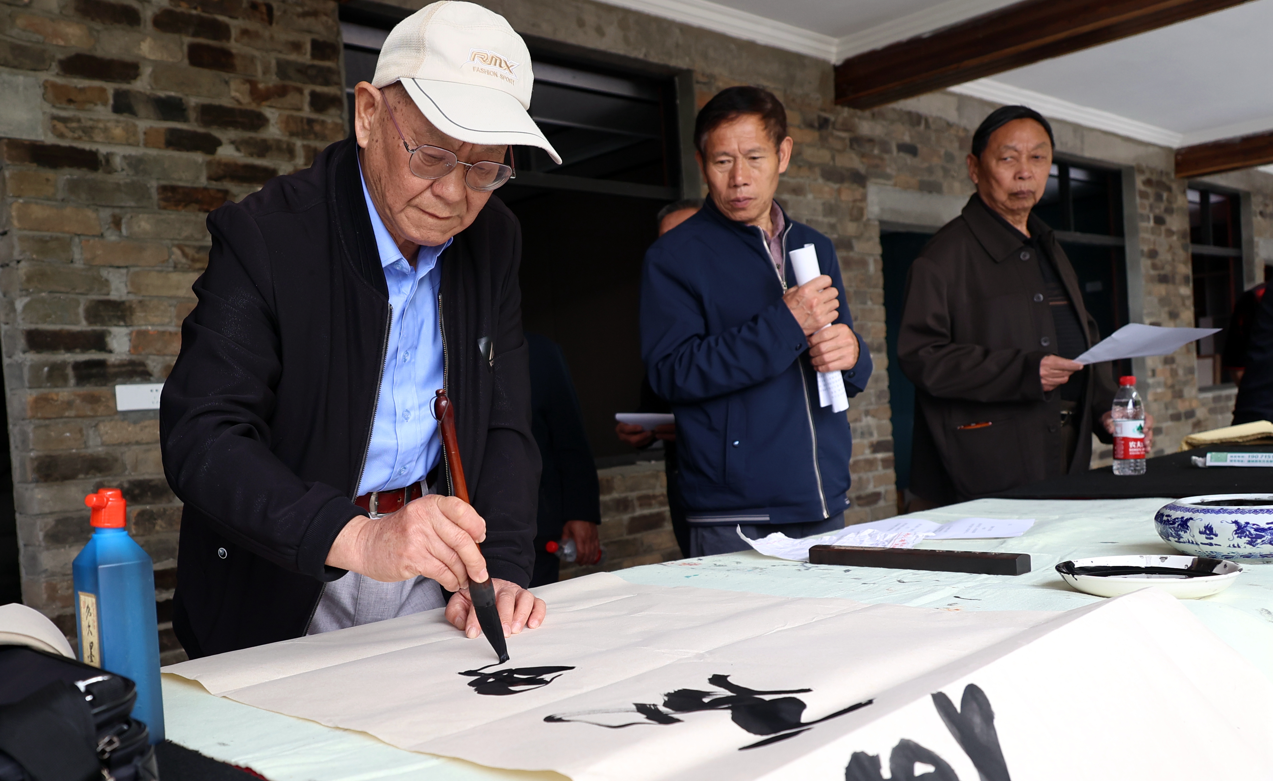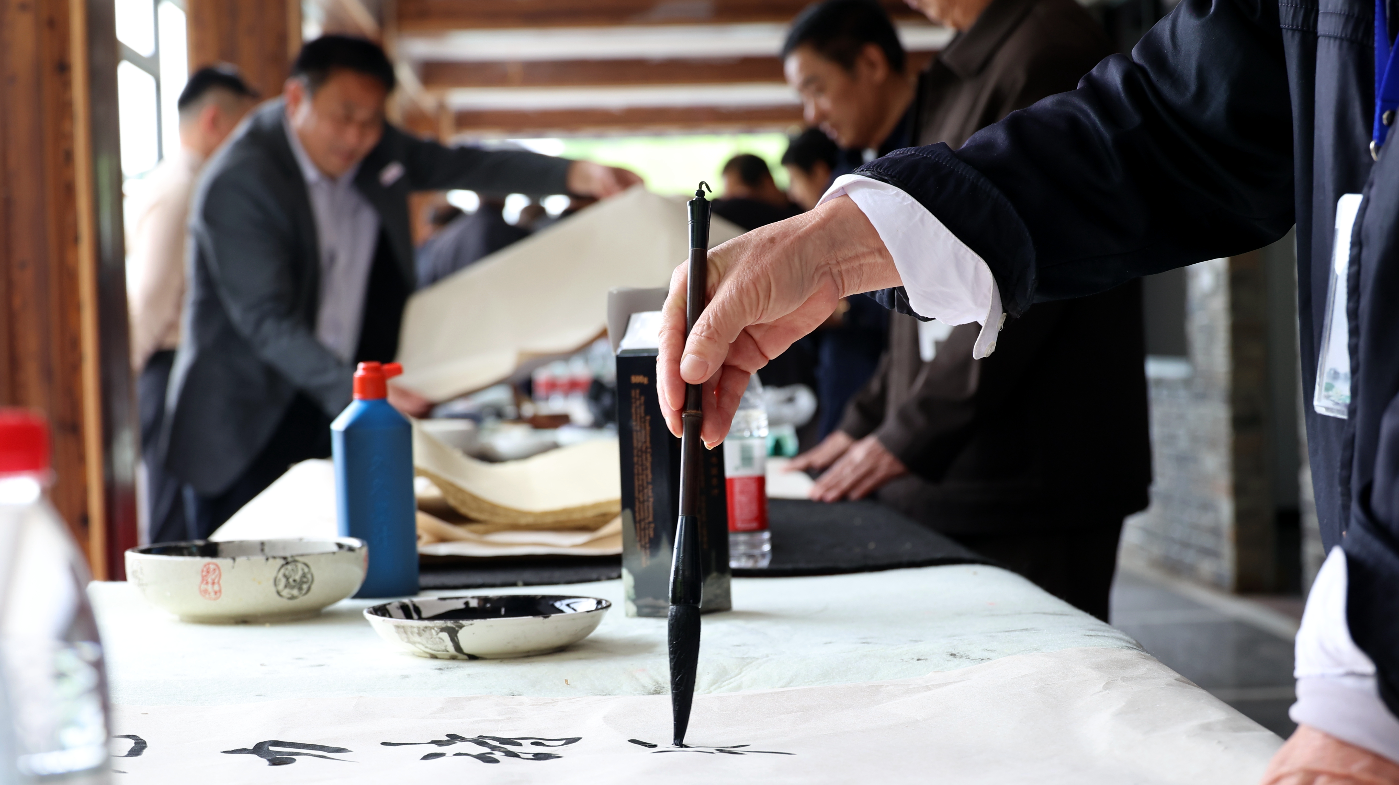 随后,书画家们挥毫泼墨,开展即兴创作,向企业赠送了一批书法作品。