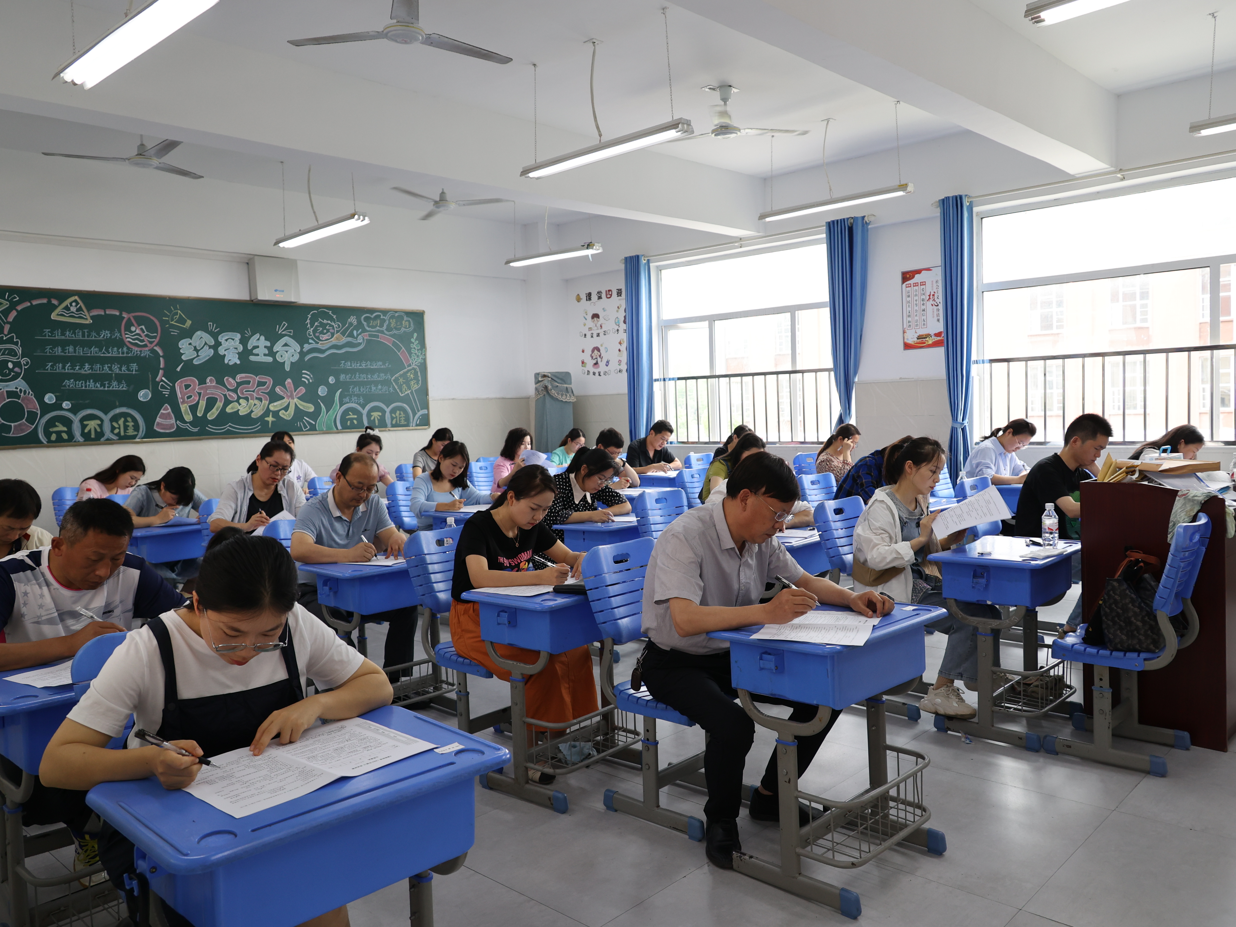 本次新课标测试共设八个考室,采取闭卷形式,考场全方位监控录像。测试立足教学实际,内容涵盖小学、初中学段的语文、数学、英语、历史、物理、化学、劳动、道德与法治等学科课程。