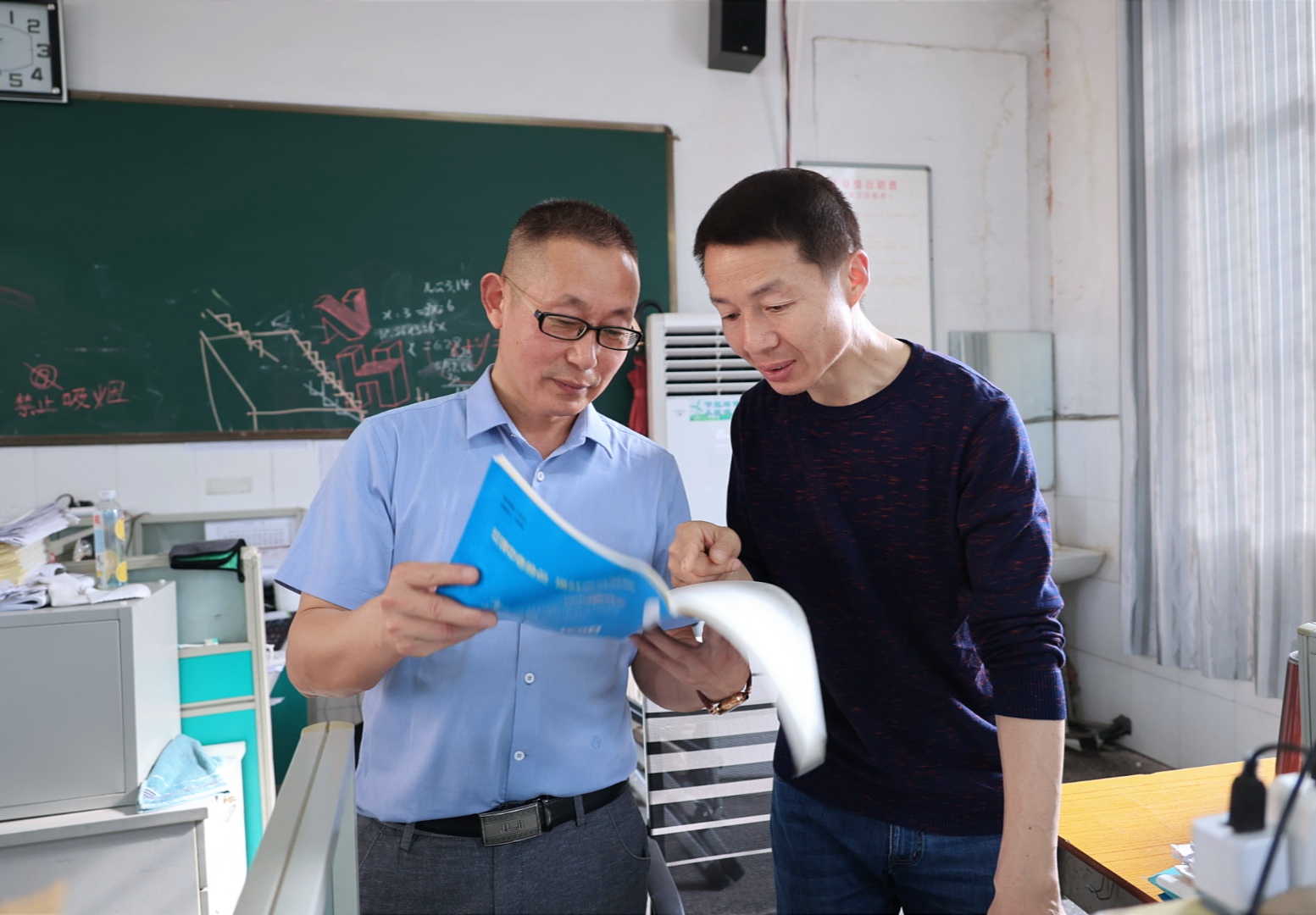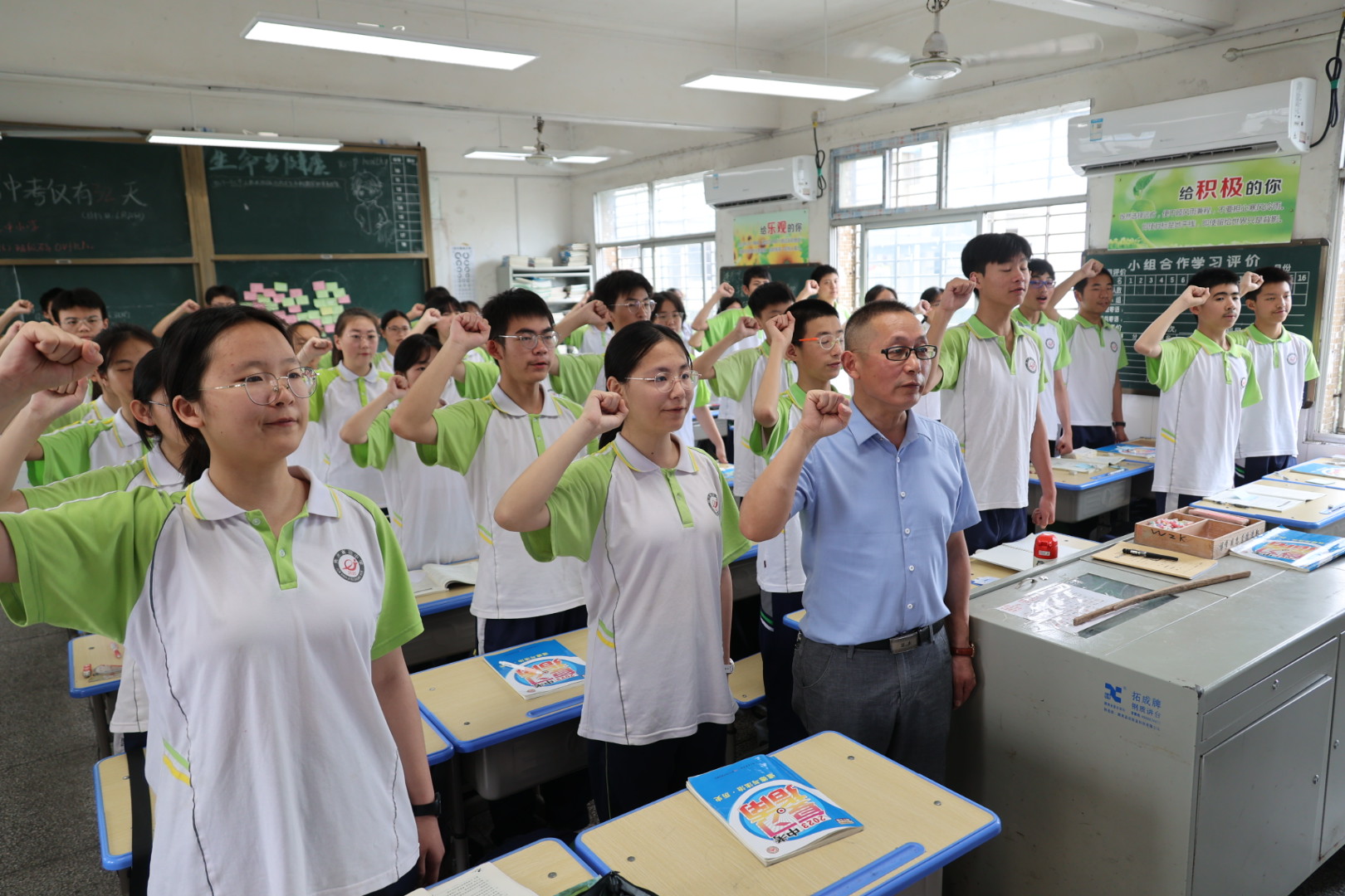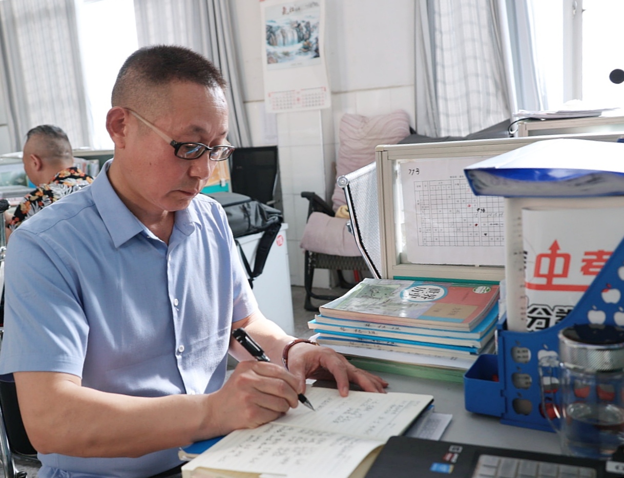 眼前这位带着学生朗读课文的教师就是章荣。今年54岁的章荣,1991年至2003年在关刀中学、城关初中等学校任教。2004年,通城县隽水寄宿中学建校后,章荣调到该校负责《道德与法治》和《历史》两个学科的教学工作。