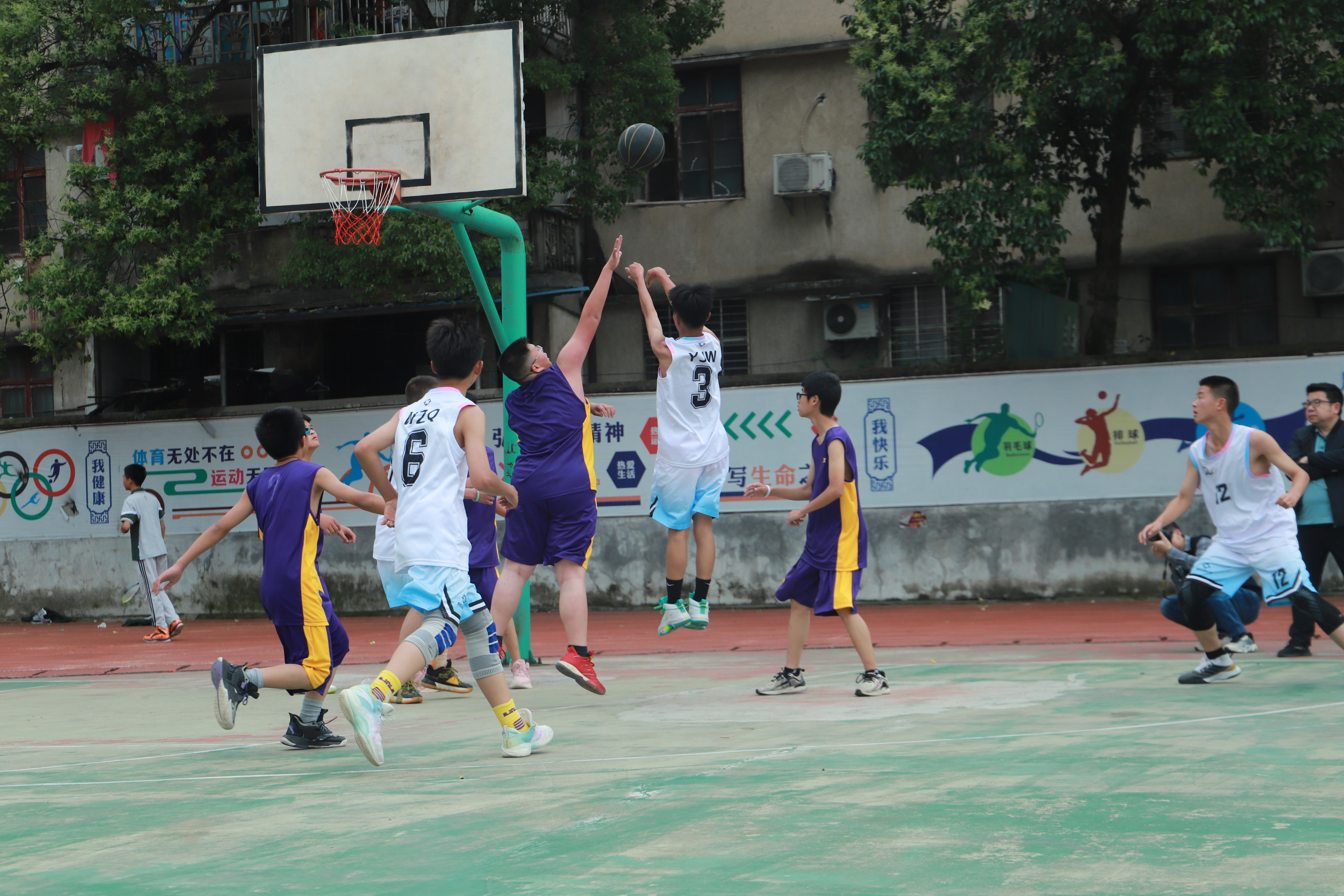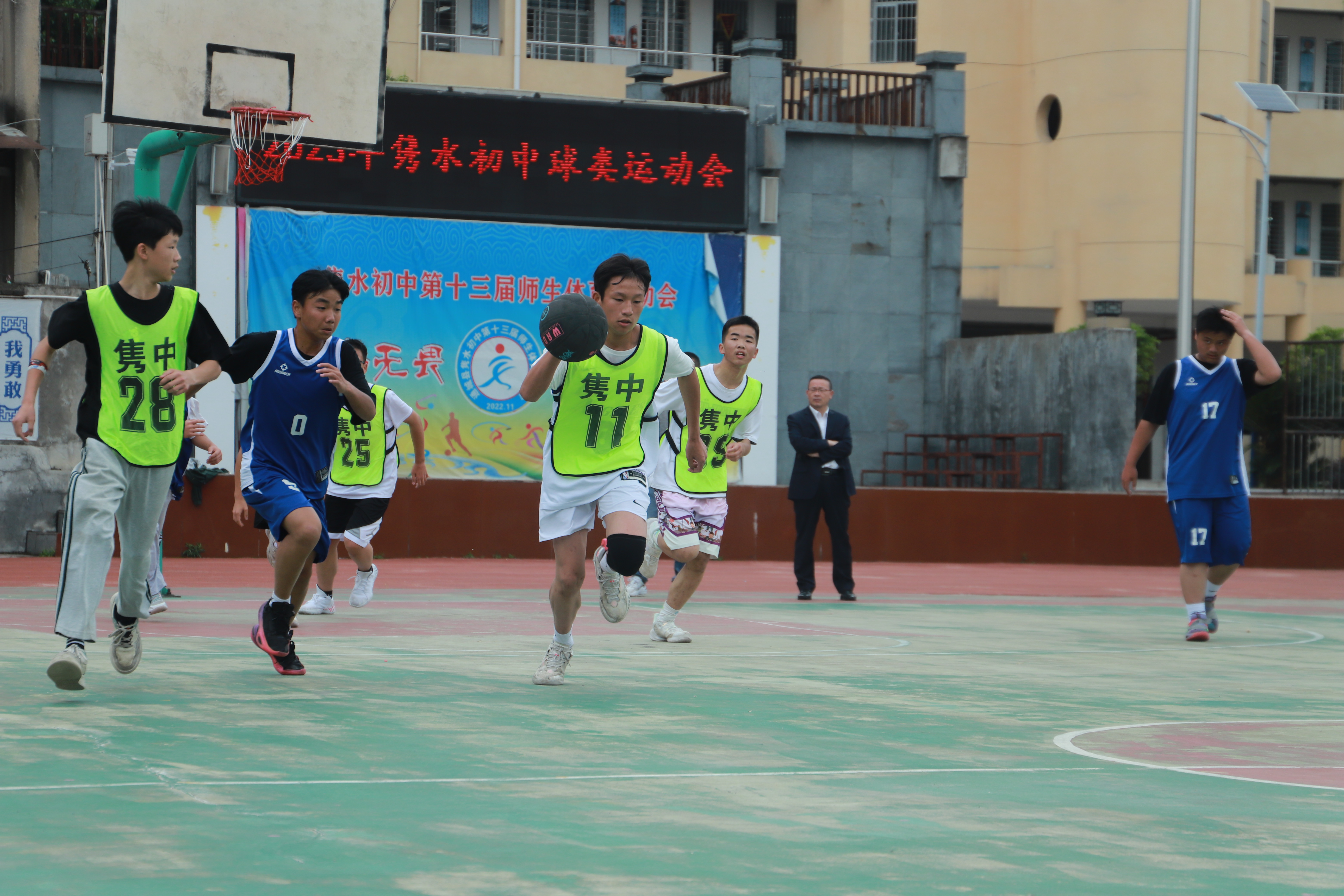 据了解,隽水初中今年的篮球联赛,全校43个班踊跃参与,经过初赛和复赛层层角逐,最终有四支代表队进入此次决赛。