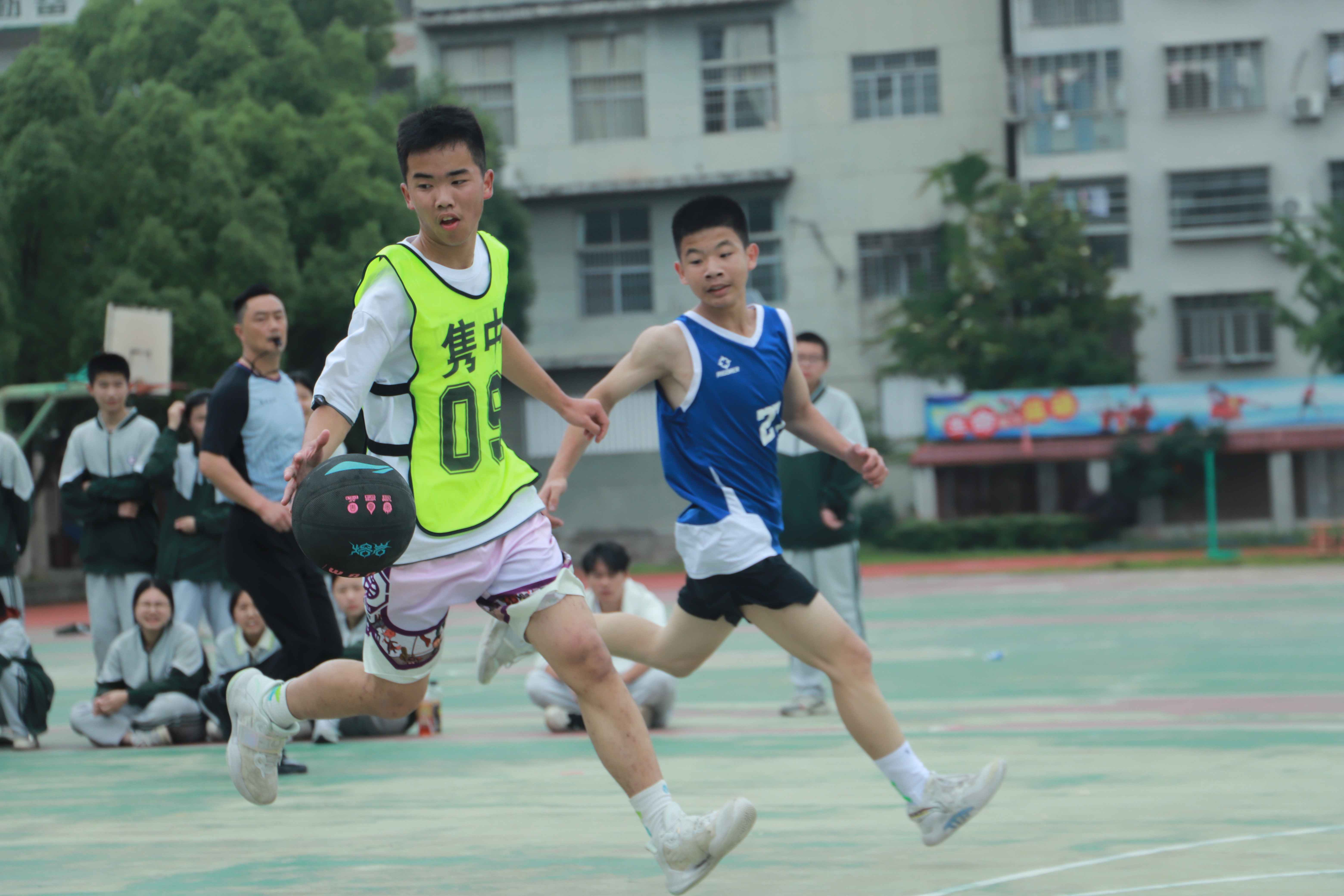 激情飞扬的篮球比赛,现场不仅有师生的欢呼鼓劲,还有球员家长们的亲临助阵。他们或指导比赛战术、或加油助威、或分发饮水,让全场比赛充满了温情和力量。