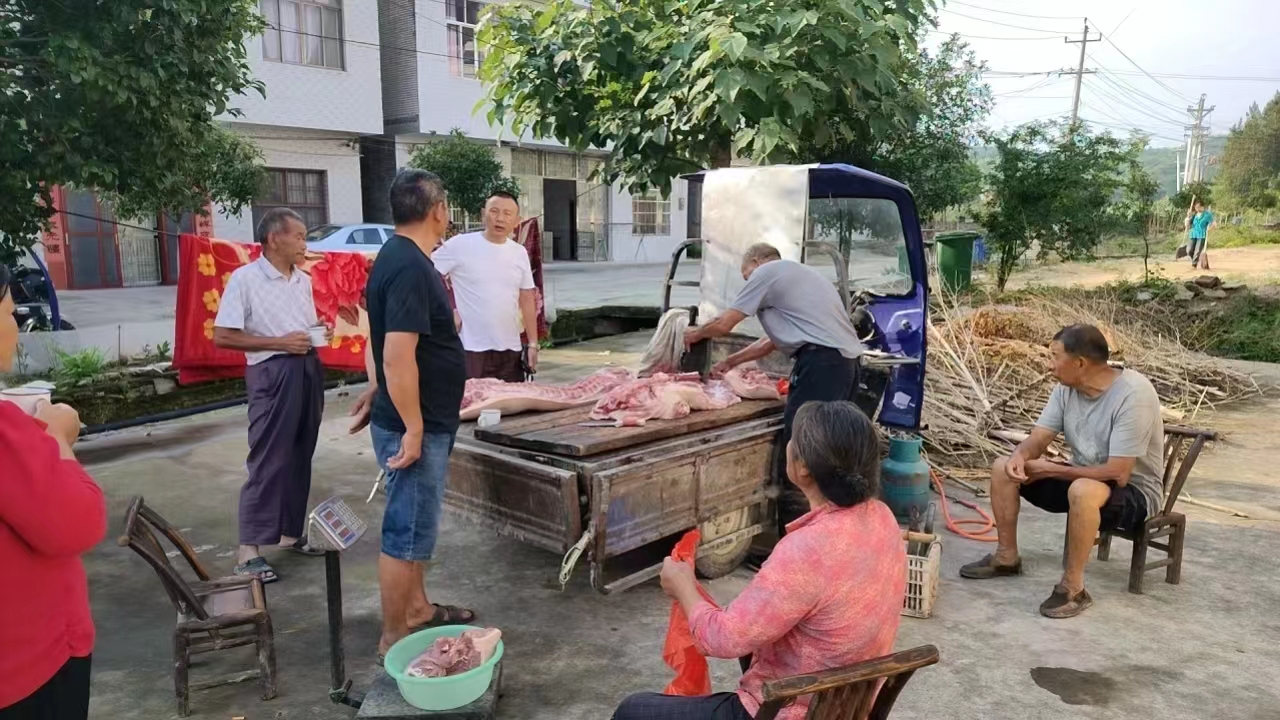 原来,何婆桥村驻村工作队员刘波在入户走访中了解到,临近端午,许多村民家中预备杀猪过节,却愁猪肉没有销路。刘波及时和驻村第一书记反映问题,提出了村干部做“代购”的想法,村支部书记郑菊花便立即召集干部们商议,收集预备杀猪农户的名单,号召大家做好宣传工作。
