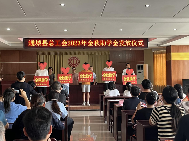 【通讯员 毛宇珍】9月6日,通城县总工会举行2023年金秋助学金发放仪式。县总工会、县教育系统工会、经济开发区相关企业工会负责人和受资助学生代表近80人参加。