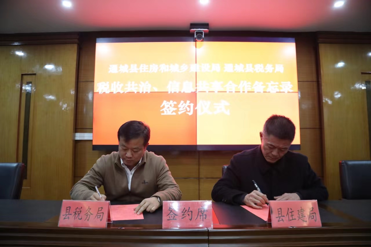 【通讯员 李锦 卢金勇】12月8日,国家税务总局通城县税务局与通城县住房和城乡建设局共同签署《关于建立税收共治 信息共享协作机制的合作备忘录》。