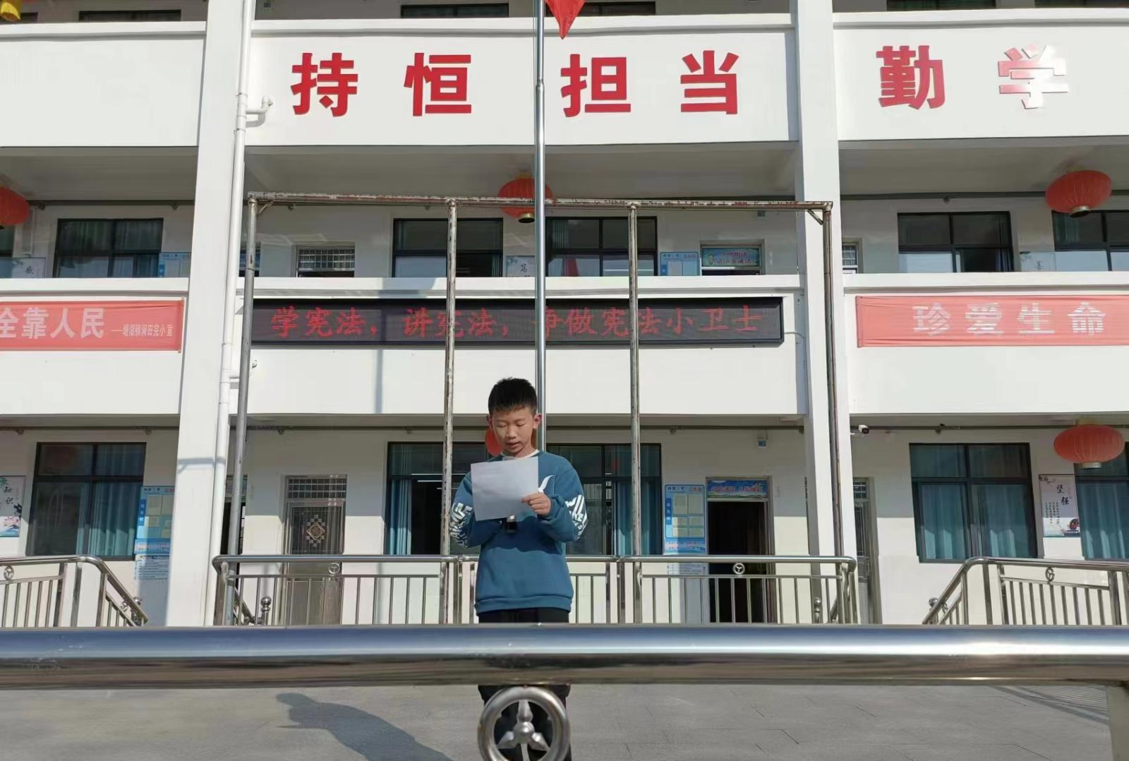 学校举行“宪法伴我成长”主题升旗仪式,学生代表通过国旗下讲话进行了知法、守法的宣传,号召所有同学行动起来,自觉学法,做合格小公民。