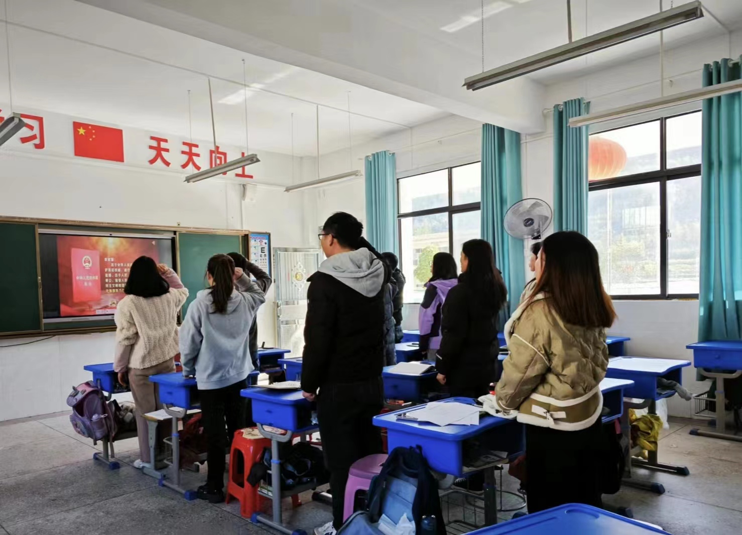 在学校负责人的带领下,学校全体教师面向宪法庄严宣誓:“忠于《中华人民共和国宪法》,维护宪法权威,履行法定职责,忠于祖国、忠于人民,恪尽职守、廉洁奉公,接受人民监督,为建设富强民主文明和谐美丽的社会主义现代化强国努力奋斗!”