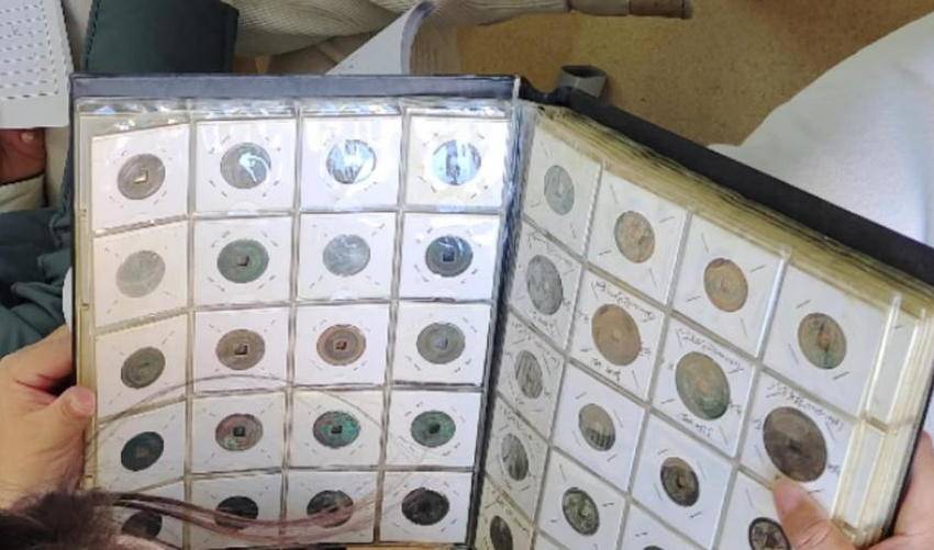 课堂伊始,刘亚敏给同学们传阅了他多年的收藏:一本本连环画,一大本不同样式不同年代的邮票和铜钱,随之还向大家展示了从县档案局拷贝的文物图片,让学生深切地感受到家乡厚重的历史文化变迁。