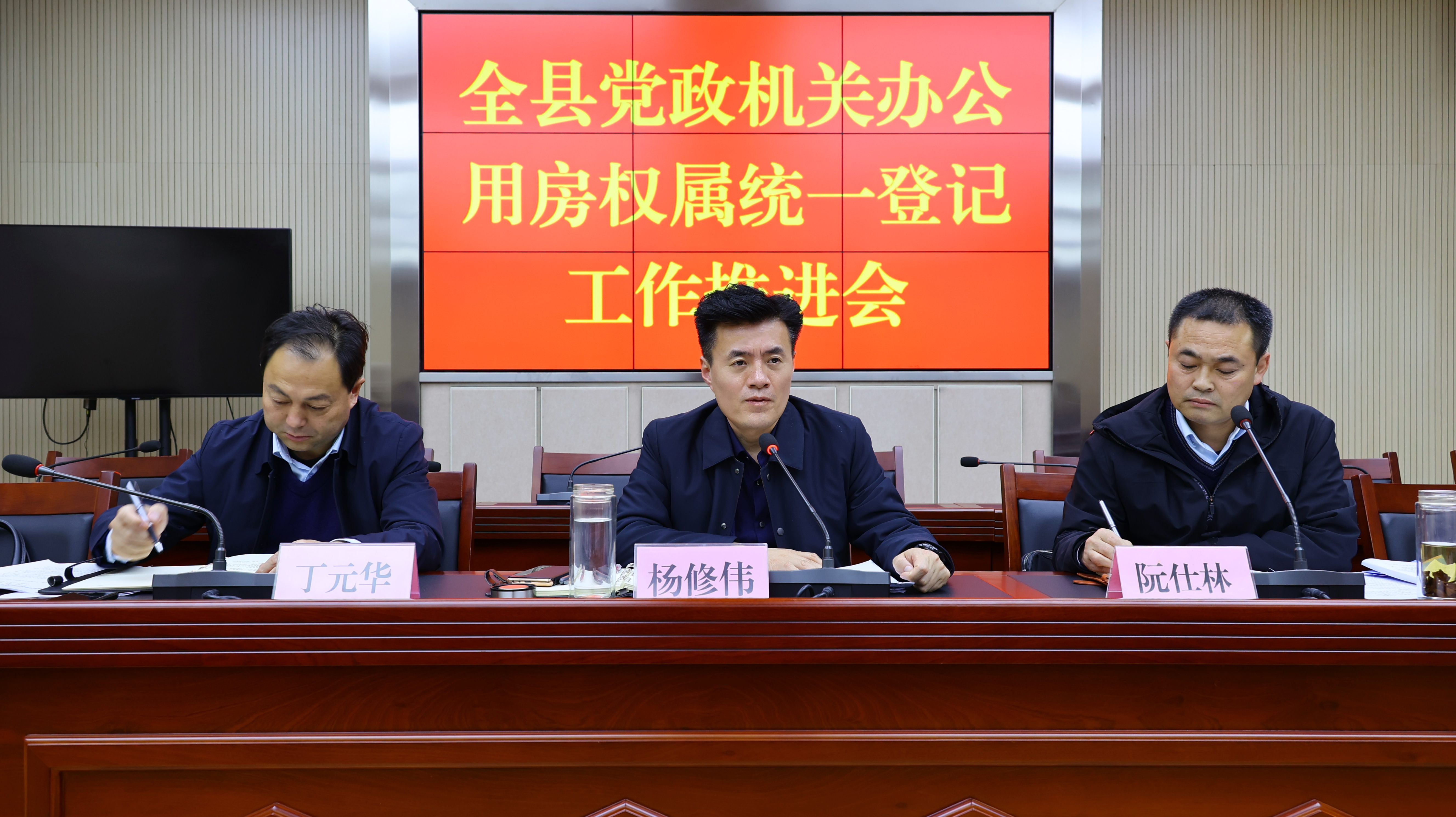 杨修伟强调,要坚持时间导向,明确办理时间节点,强化工作调度,抓紧时间做好资产梳理,确保按时限完成党政机关办公用房权属统一登记工作任务。要坚持问题导向,敢于正视问题、善于解决问题,发现问题的本质和症结所在,杜绝国有资产流失,做到账面资产与实际资产相符合,为办公用房权属统一登记奠定坚实基础。要坚持责任导向,各单位要明确责任,房屋使用单位要与机关事务服务中心做好权属交接,各职能部门要做好产权证件办理,有关单位要做好协同督办,全力推动全县党政机关办公用房权属统一登记工作落实见效。