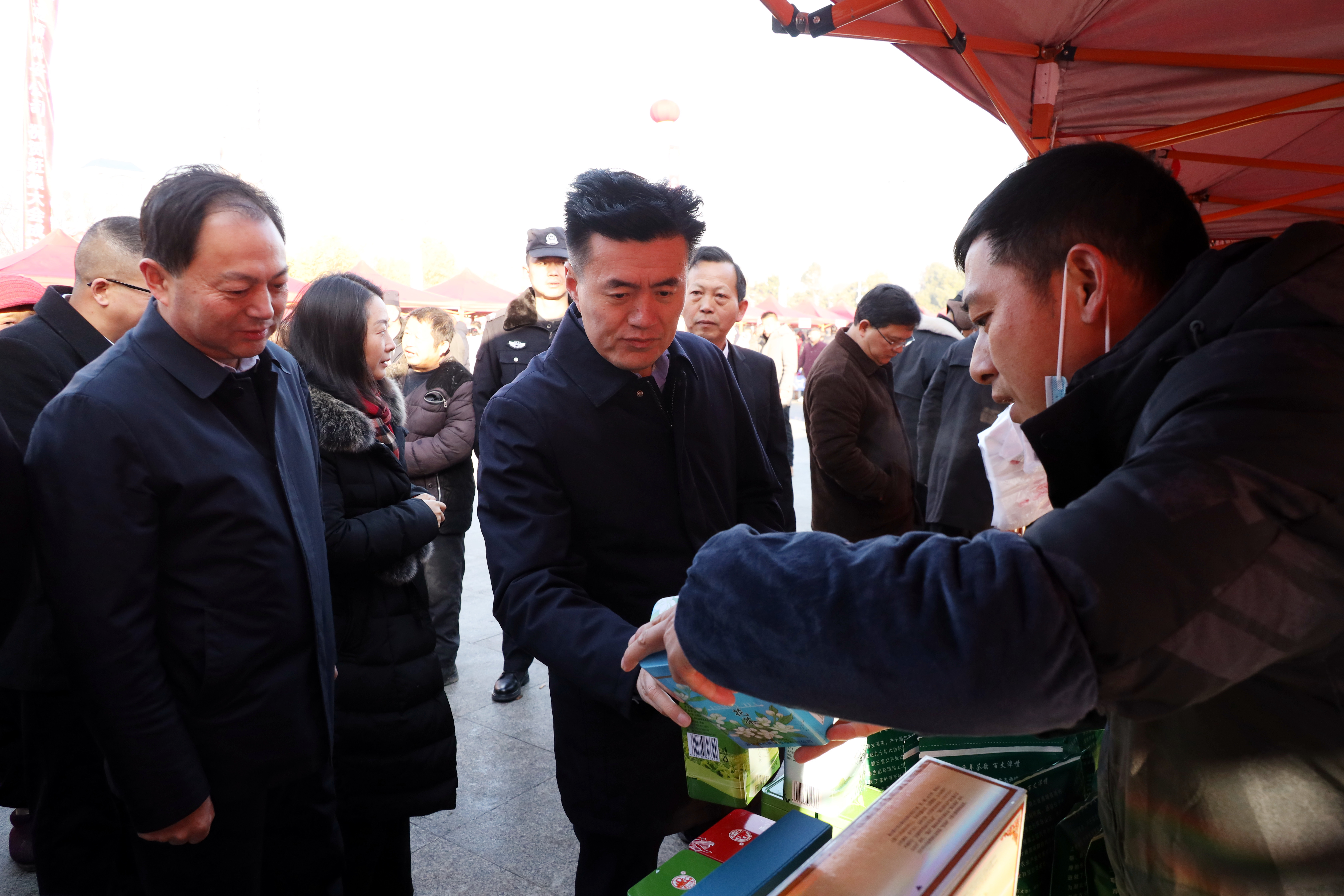 集市现场人来人往,欢笑声、问价声、报价声此起彼伏,热闹非凡。各个展区前菌类干货、鸡鸭鱼肉、米面粮油等农特产品琳琅满目,一应俱全。县领导来到活动现场,现场巡展,体验市民群众的消费热情。