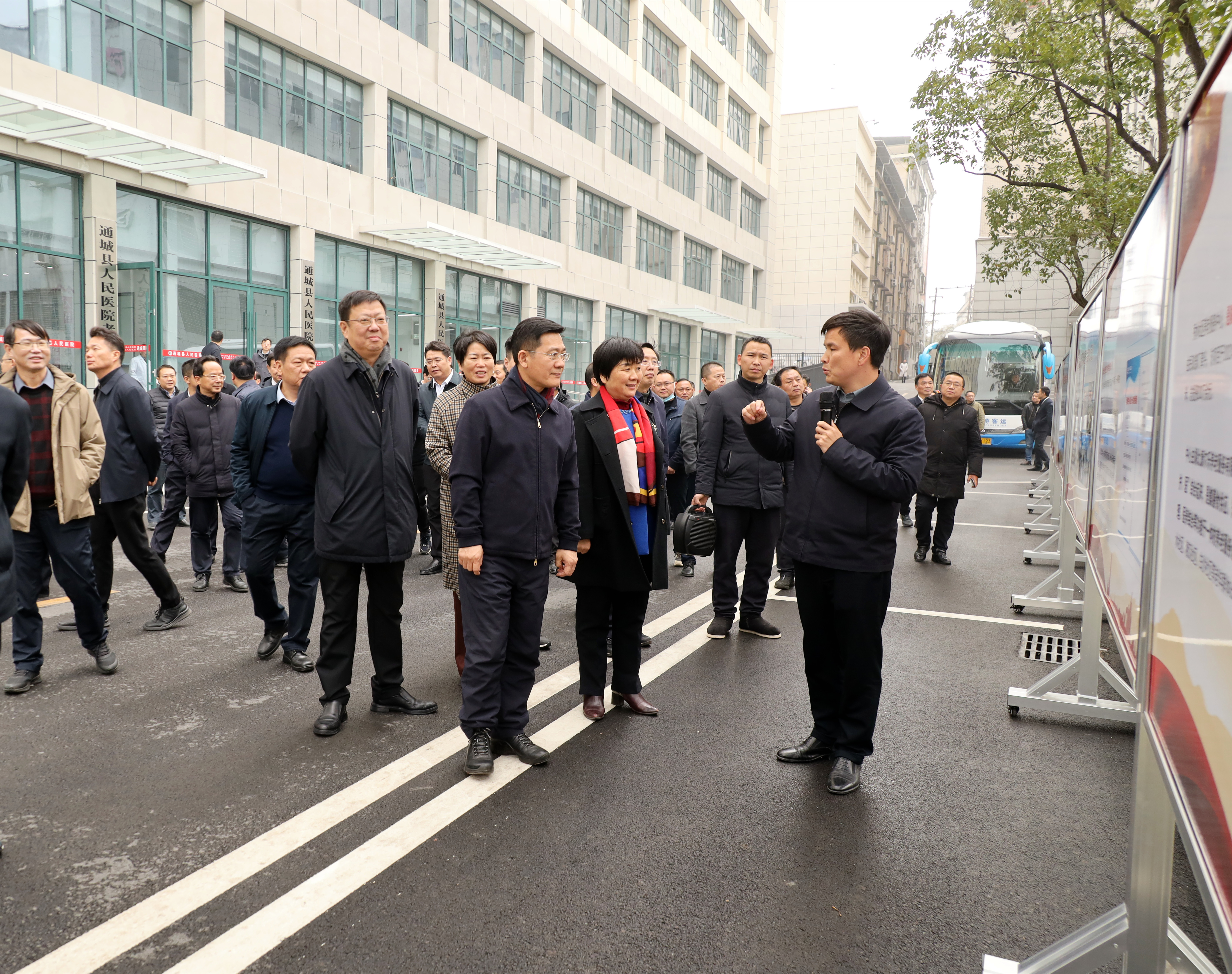 在通城县,检查团参观了湖北通成高新材料有限公司、通城县电子信息科技产业园项目、通城县人民医院医养结合项目和通城县实验学校餐厨垃圾处理站。
