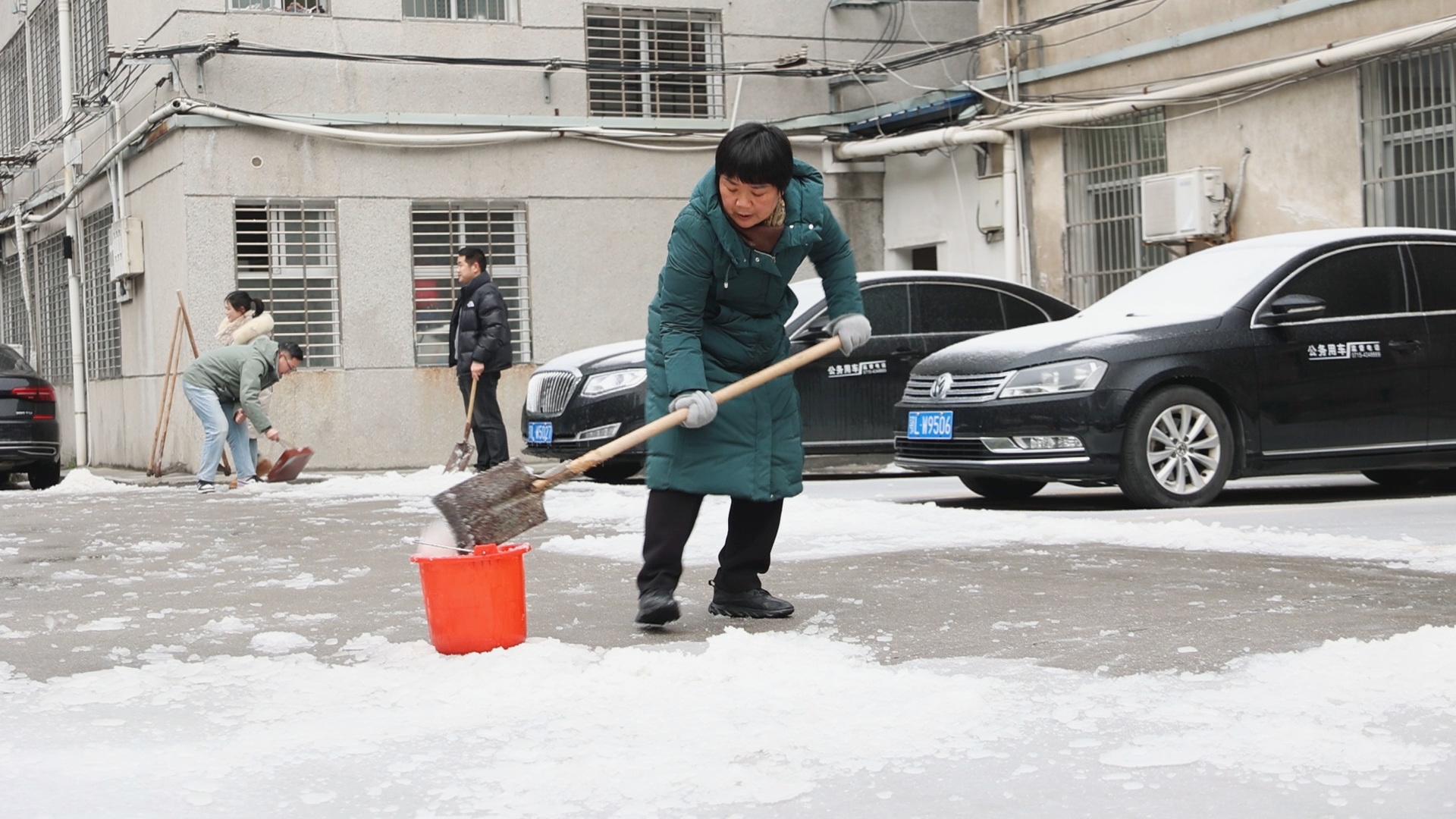 清雪现场,大家不顾天气寒冷,铆足干劲,挥舞着铁锹、扫帚,合力扫雪,呈现出一派忙碌的劳动景象。