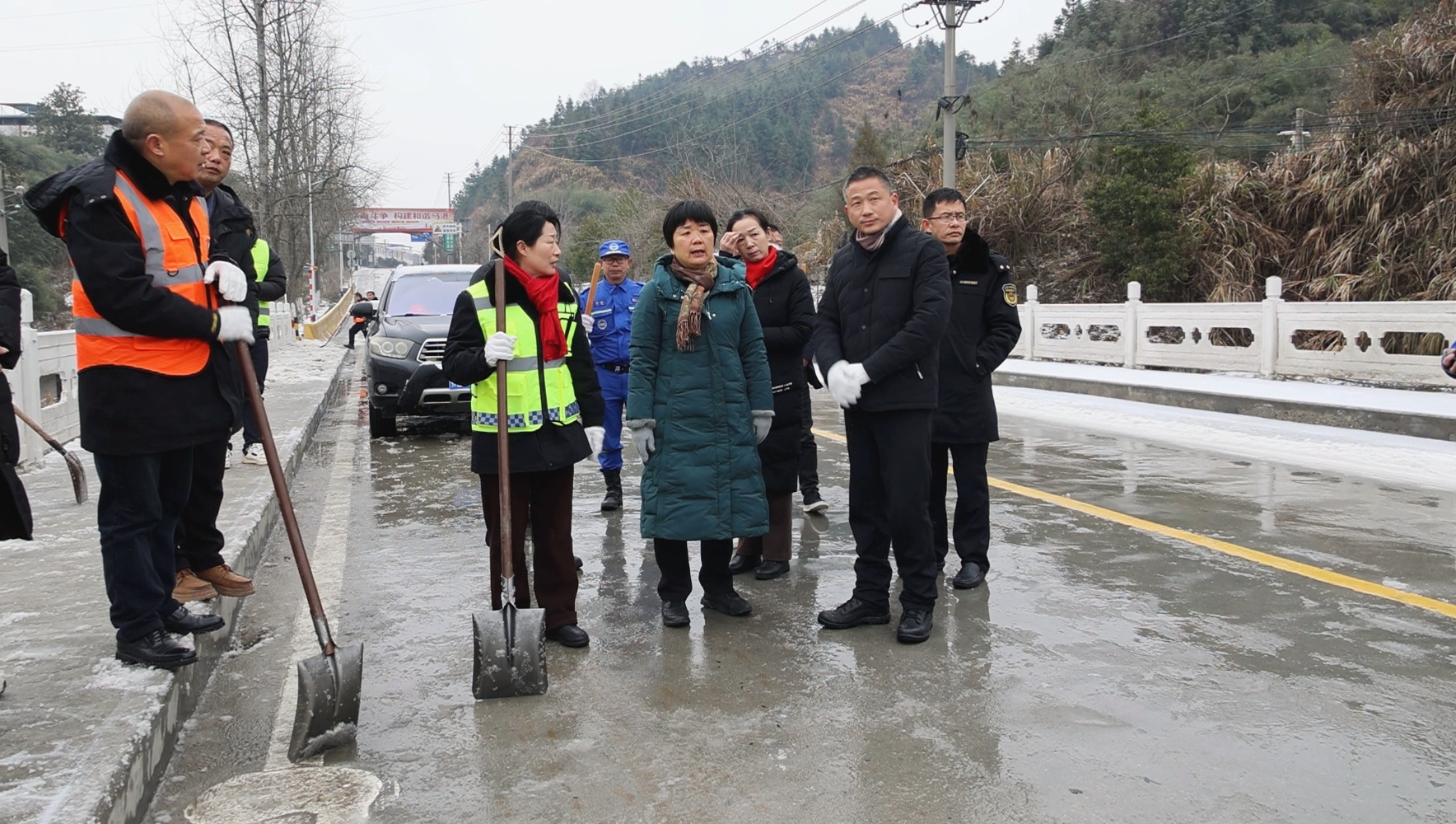 刘中英还前往马港镇、五里镇等乡镇,现场查看道路扫雪除冰工作和桥梁通畅情况,并现场研究、解决相关问题。刘中英强调,越是天气恶劣,越要把群众安危冷暖放在心上,各乡镇、各部门要进一步提高政治站位,周密安排部署,细化工作措施,坚决做好冬季道路扫雪除冰工作,全力排除险情,及时抢通道路,确保全县群众安全出行。要密切关心群众生活,结合“敲门行动”,重点宣传防火、防一氧化碳中毒等安全常识,避免不必要的损伤。各村(社区)要发动干部群众参与道路除雪,保障道路畅通,一切以人民群众安全为要务。