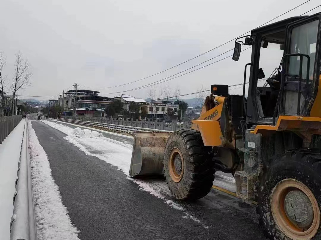 “走,铲雪去!”装载车从程凤大桥出发,延程左公路到左港村,再折返从程凤大桥延五保线到金塘村,延线往程季公路到程凤村五组清理路上积雪,一路铲雪破冰开路不停歇,道路慢慢完全露出了“本色”。