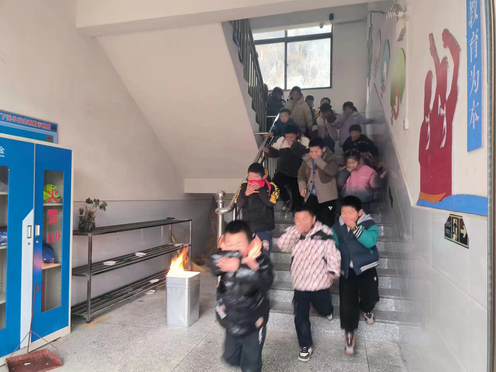 上午9点30分,各护导教师到岗到位。随着一阵尖锐而又急促的地震警报声响起,所有学生快速蹲在课桌下,双手抱头或用书本护头,应急避险;警报声结束后,学生在老师的指挥下从教室前后门迅速、有序地向操场应急疏散。