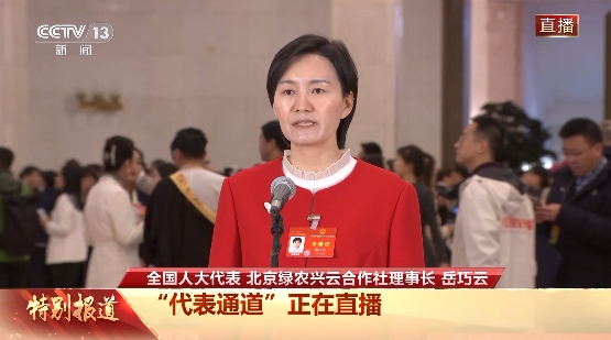 全国人大代表、北京绿农兴云合作社理事长岳巧云接受采访。