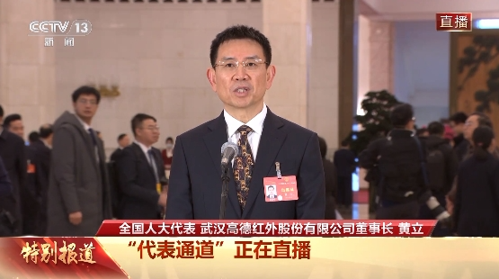 全国人大代表、武汉高德红外股份有限公司董事长黄立接受采访。